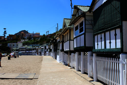 Dia calorós i lluminós, cel d’un blau intens, immens, sense un núvol a l’horitzó. Platgeta encerclada entre penya-segats amb els xiringuitos imprescindibles, i al passeig de la platja una filera de casetes verdes i blanques, aixecades sobre pilons que semblen de pescadors i és que les Casetes del Garraf li confereixen a la seva platja una imatge especial.
