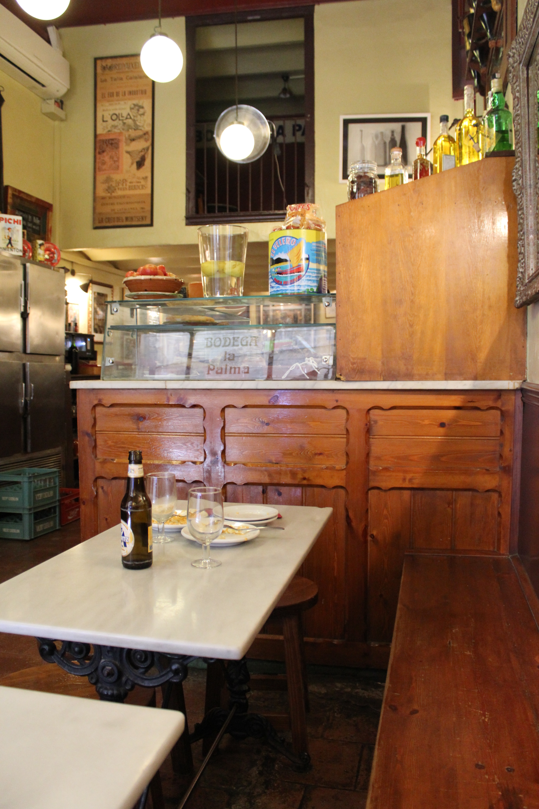 Sembla ser que algunes coses han canviat en aquesta petita bodega situada al ben mig del barri vell, al Carrer La Palma de Sant Just, 7. Canvi d’amos i conseqüentment canvi de preus i d’altres petits detalls. A pesar d’això continua tenint l’encant d’abans, l’encant d’aquestes petites bodeguilles tan característiques de la nostra ciutat. Recordo haver anat fa una pila d’anys quan feien menús molt econòmics i l’ambient era força bohemi. Confesso que feia molt que no m’hi passava, principalment perquè em falla en una de les coses que més m’agrada fer en aquests espais, gaudir d’una bona cervesa mentre llegeixo o simplement deixo passar el temps, la cervesa que tenen no em convenç, però val la pena deixar-se caure i gaudir del seu espai.