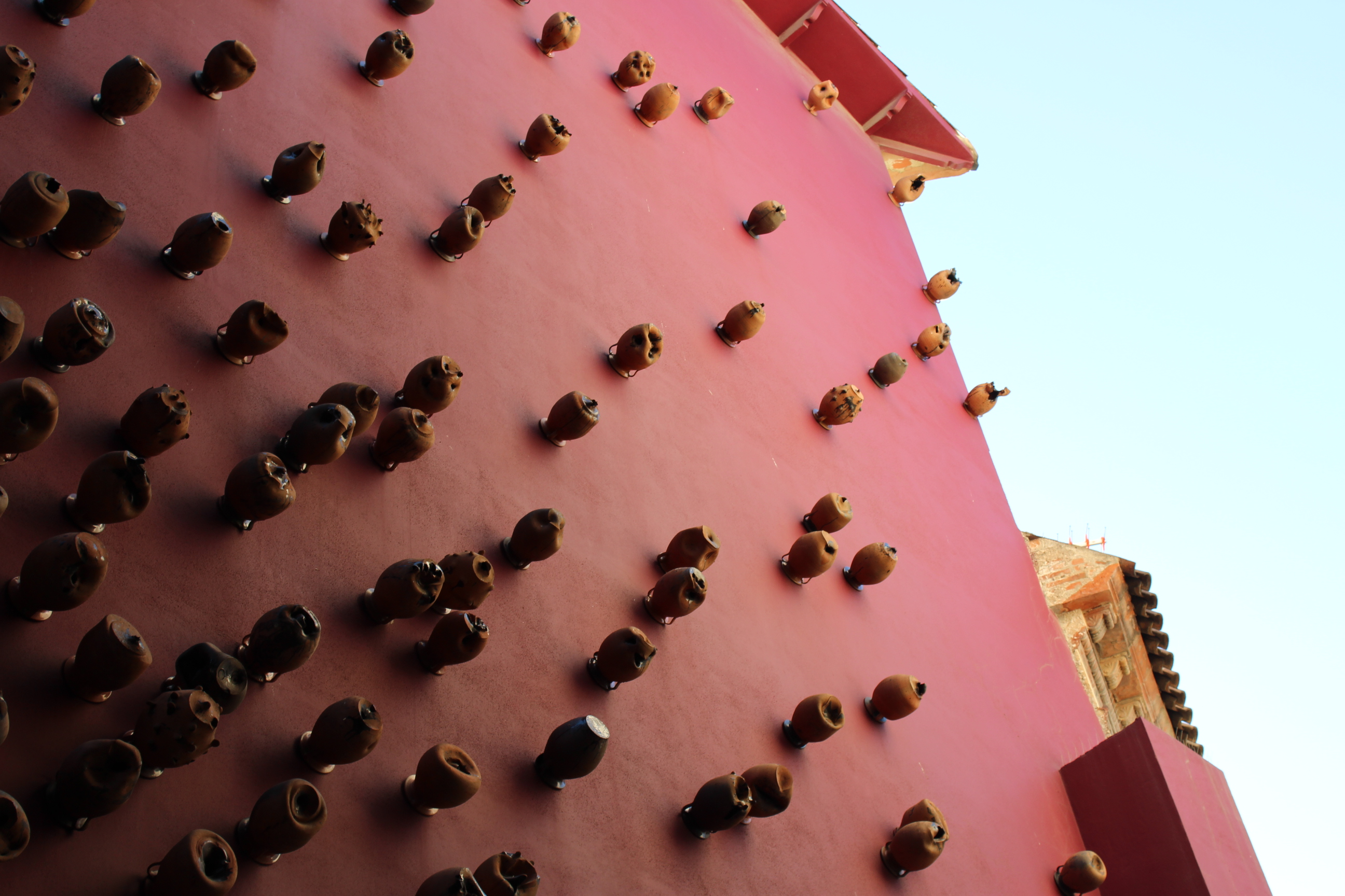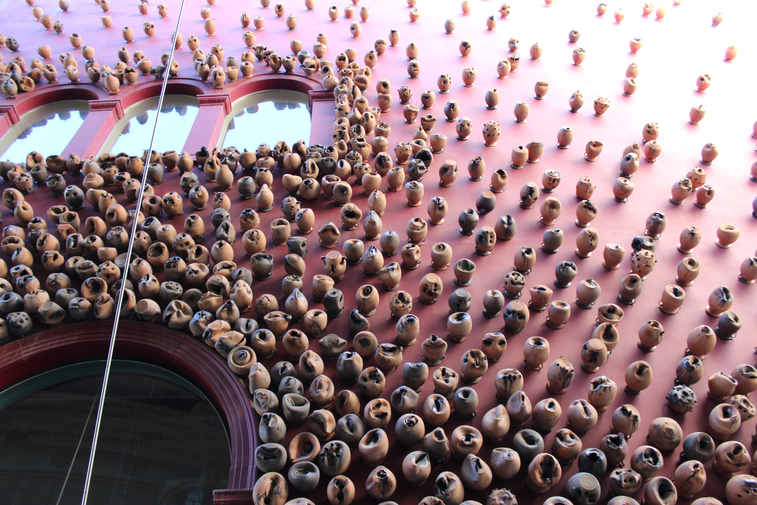 El volum d’aquestes peces que emergeix amb força i de manera quasi dramàtica, es reflecteix en la paret vidriada de l’edifici que l’enfronta, generant un interessant joc visual i aconseguint, d’un passatge anodí i sense interès, un espai volumètric impactant, a on les peces de ceràmica, en un precari equilibri, prenen vida pròpia gràcies a la seva formació individual i única.