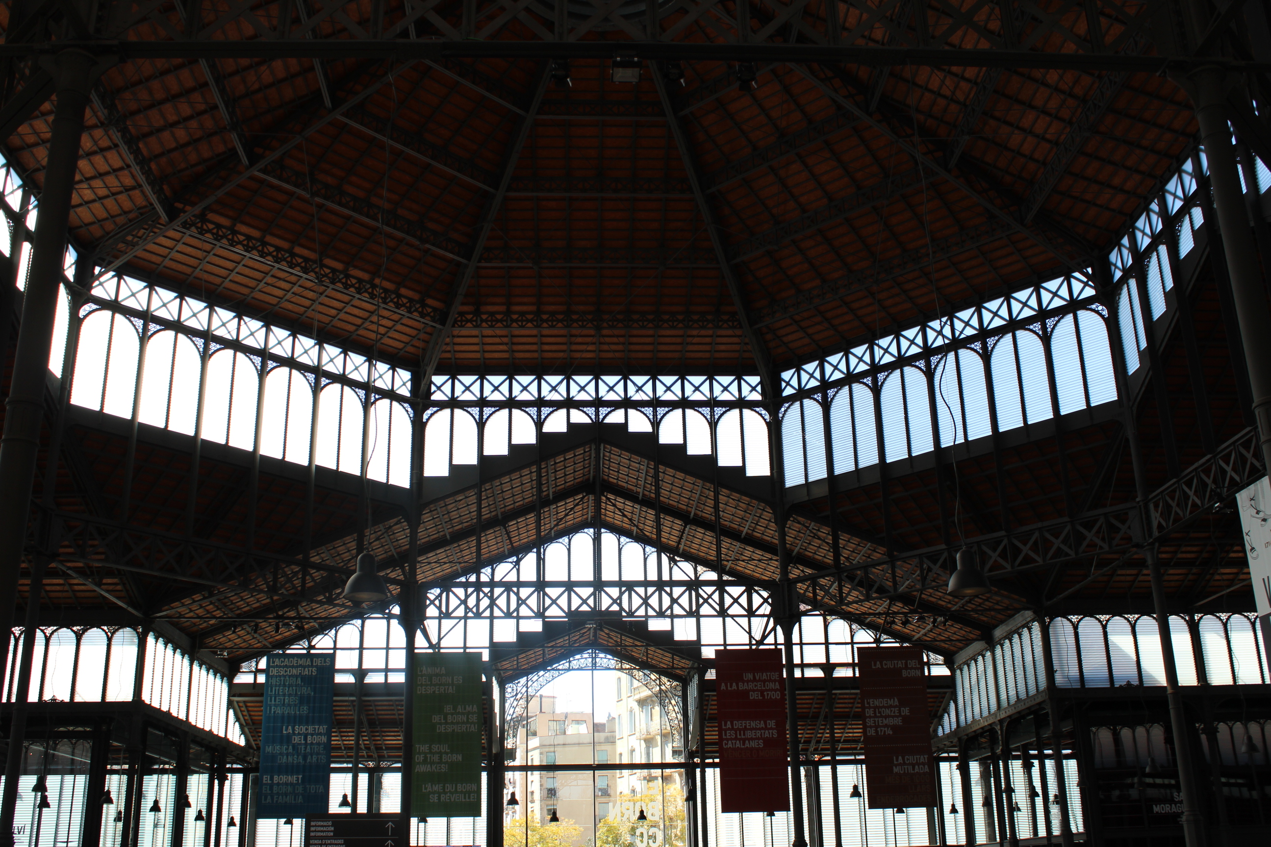 La majestuosa estructura de ferro de l’antic Mercat del Born s’alça davant nostre i acull les nostres passes en traspassar les seves portes. Entrar al seu interior té quelcom de màgic, de ritual iniciàtic, de traspassament a un espai diferent, a una altra dimensió, t’embolcalla un aire tocat per la llum especial que travessa els vitralls, les seves dimensions t’empetiteixen. Avançant apareix al nostre davant la barana que marca el perímetre de les ruïnes excavades a un nivell inferior. El pes dels colors marrons i beiges de la pedra es contraposa amb la lleugeresa del ferro colat, de la fusta de la taulada subjectada per una teranyina de ferro.