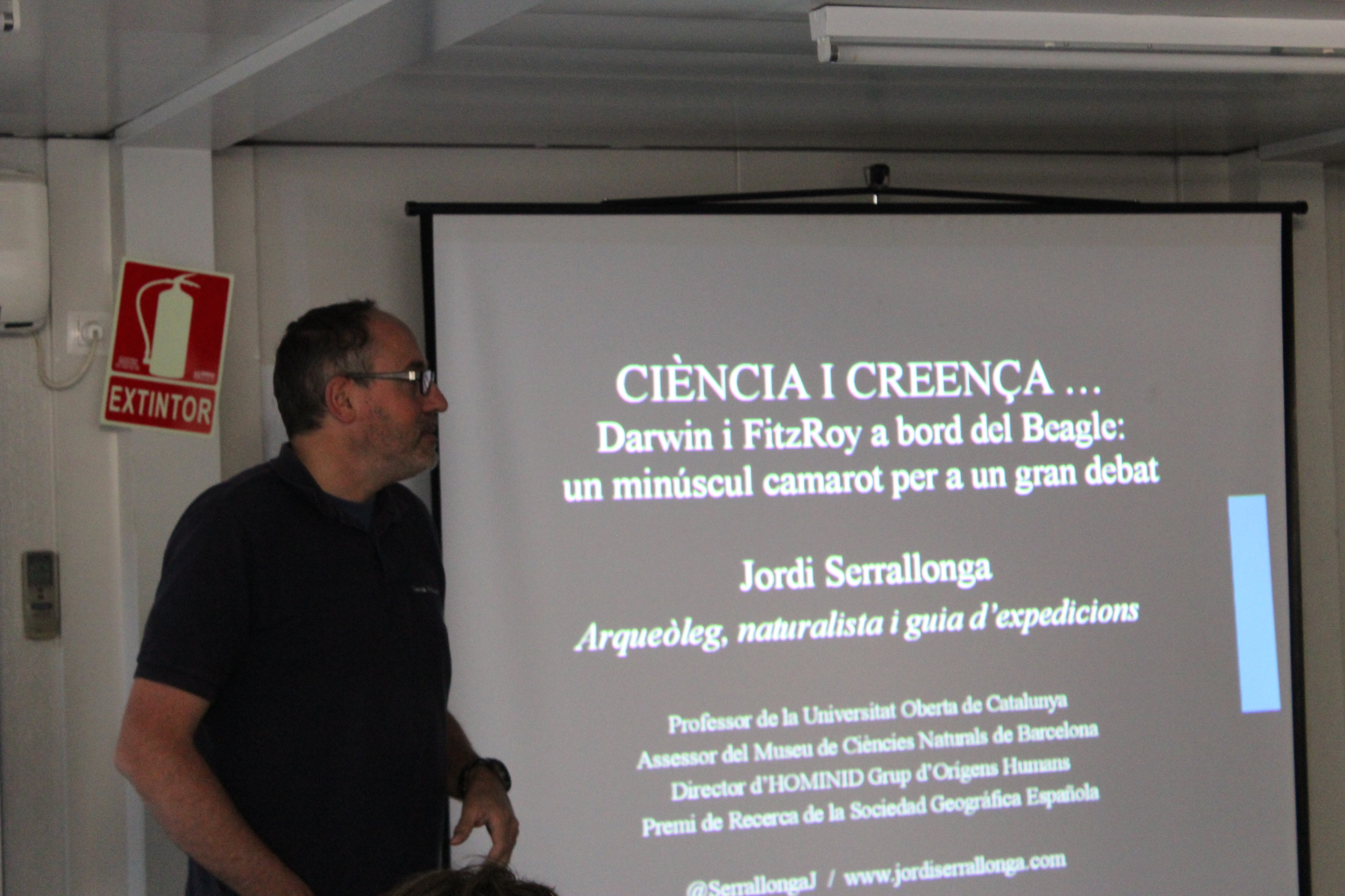 Les explicacions de Jordi han sigut realment interessants, principalment, per trencar tòpics al voltant de la figura de Darwin, però també per adonar-nos (un cop més, potser) de què la Història vista en perspectiva és un cúmul de casualitats amb les seves conseqüències. Casualitats en el transcurs de la vida de Darwin qui en els seus inicis no tenia cap interès científic, tret de col·leccionar escarabats pel simple plaer de col·leccionar, costum molt arrelada a l’època. Però també un munt de casualitats que el portaren a fer un viatge de cinc anys de durada al voltant del món. Un viatge gens programat i pel que tots els indicis marcaven que no estava preparat, Darwin fou un nen ric i benestant que no sabia ben bé què fer amb la seva vida per a desesperació del seu pare. A pesar d’això, la casualitat en els contactes personals que va rebre a la Universitat, com a diverses lectures sobre geologia que caigueren a les seves mans el portaren a iniciar el famós viatge que havia de durar dos anys i que va acabar durant cinc. Un viatge al què com es va demostrar Darwin no s’hi va acostumar mai i va patir marejos durant tot el temps.