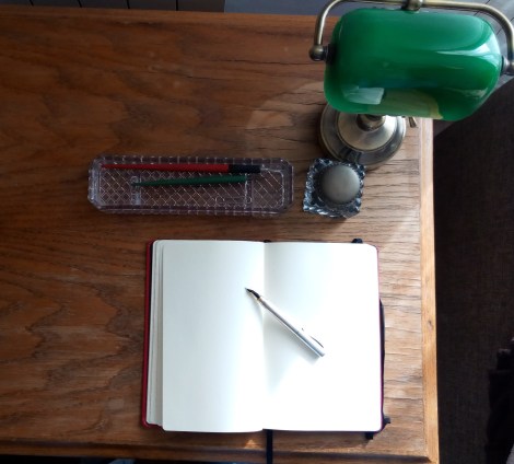 Un dia qualsevol arribà el punt d’inflexió. El punt d’inflexió sempre arriba, la majoria de vegades de manera inesperada. I arribà en forma de paper en blanc, d’estilogràfica retallant la seva forma sobre el blanc immaculat. Totes dues peces emmarcades per la fusta fosca d’un escriptori buit, net després d’haver-s’hi desprès del caos que l’amagava.