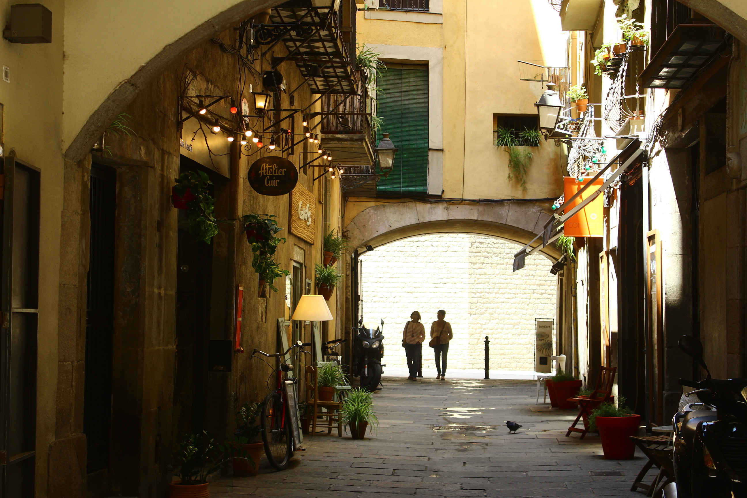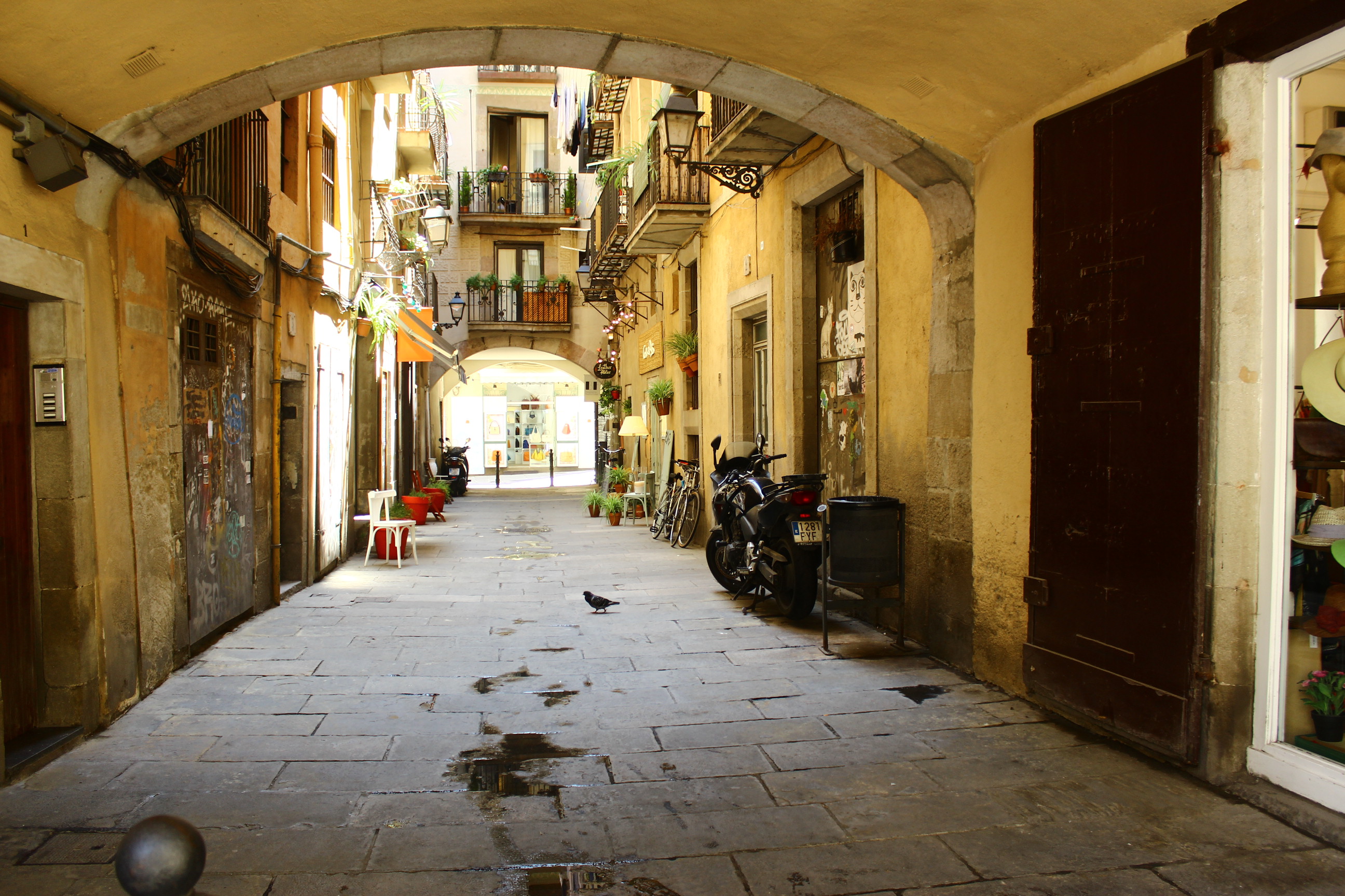 Carrer de la volta dels tamborets. En l’antiga ciutat, abans de la destrucció de les muralles i l’obertura cap a l’Eixample, la densitat de la població obligà a la construcció de les Voltes, edificacions en els caps de carrer, per tal de guanyar espai per a habitatges. Aquest fet va conferir una sensació claustrofòbica a la ciutat, els carrers es convertiren, pràcticament, en patis de llums. El barri de la Ribera encara conserva un gran nombre de voltes, i és fàcil fer-se una idea d’aquesta sensació passejant pels seus carrers.