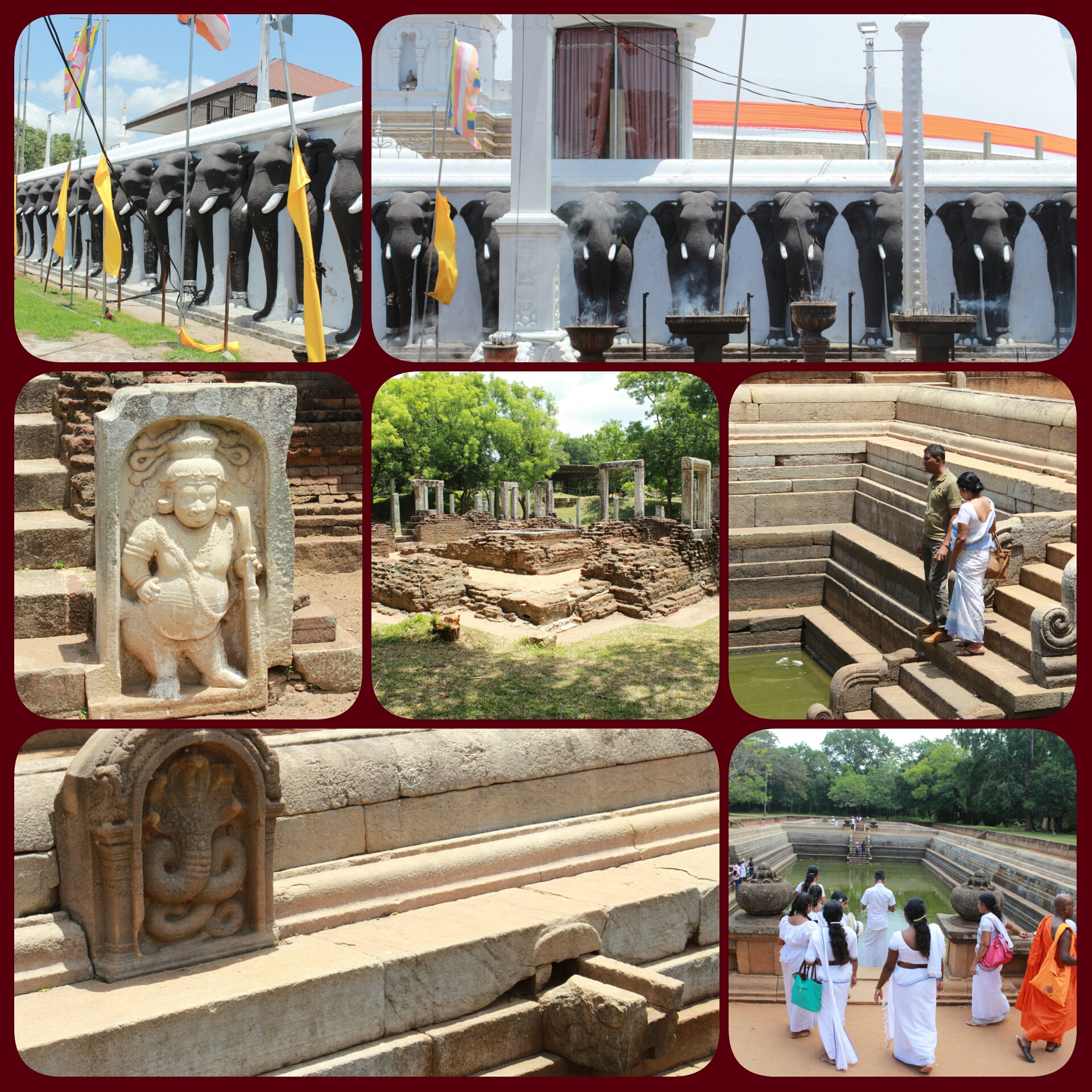 Com a llocs neuràlgics, un arbre de dos mil d’antiguitat, el Jaya Sri Maha Bodhi, amb grans mostres de veneració, i l’estupa de Ruwanwelisseya, amb 100 metres d’alçada i 300 de circumferència, del segle II aC. L’estupa és aquesta construcció amb forma de campana, a dins està ple, jo crec que de terra, no s’hi pot entrar, però em van explicar que mentre es construeix és pot possar una relíquia, o les creences budistes i es converteix en lloc sagrat. S’ha de donar la volta cap a l’esquerra i en algun lloc hi ha una mena de capella amb un Buda dins a on la gent prega i li porta ofrenes en forma de flor de Loto o menjar. D’acord, el principal problema radica en que el sol es implacable i a partir de les 10 del matí el terra abrasa, perquè has de fer la volta descalç, ja que és sagrat. Doncs bé, quan vaig arribar a una de les més importants, molt poca gent s’atrevia a fer la volta, jo vaig anar fins a l’entrada pensant que em sotirien ampolles a les plantes dels peus, i com la majoria de la gent, vaig fer tres fotos i me’n vaig tornar.