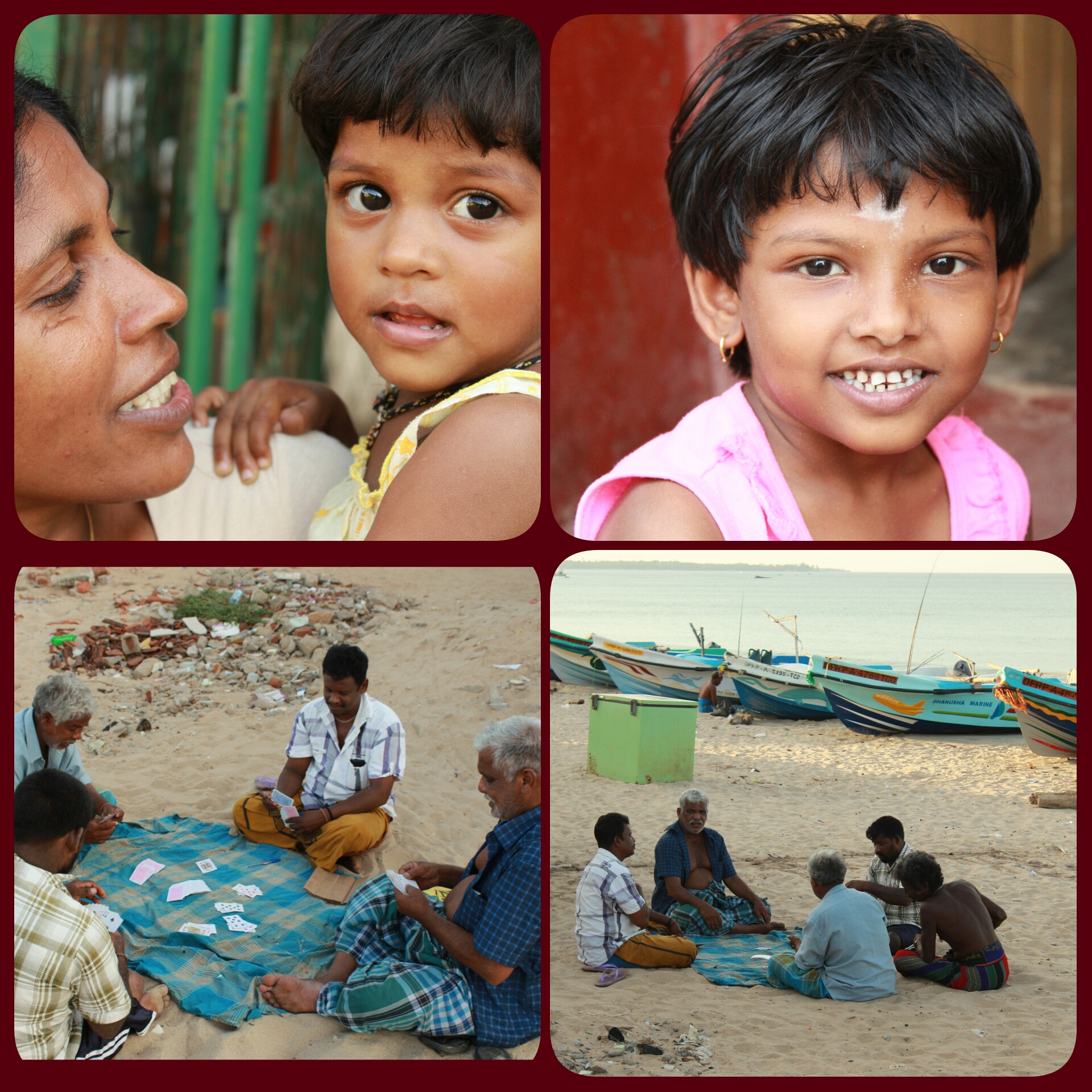La primera tarda vaig anar a passejar pel centre i vaig descobrir, sense voler, el «barri» pescador, una sort de carrerons estrets que anaven a confluir a la platja plena de barques. Una zona que no surt a la guia. Una zona a on no hi han turistes, un regal per a mi. Els homes jugant a cartes a la sorra, les dones preparant menjars, els nens jugant i bojos per saludar-me, per què els hi fes fotos. Tothom preguntant-me i saludant-me i rient, una senyora va sortir i em va explicar, orgullosa, que tenia 80 anys, altres dones reien, ens vam abraçar, li vaig acariciar la cara, vam riure. Els carrerons eren estrets, laberíntics, de cop hi volta et trobes un temple hinduista, un altre, la gent dins casa seu, el seu afer diari, i jo allà, sentint-me premiada pel privilegi de ser-hi.