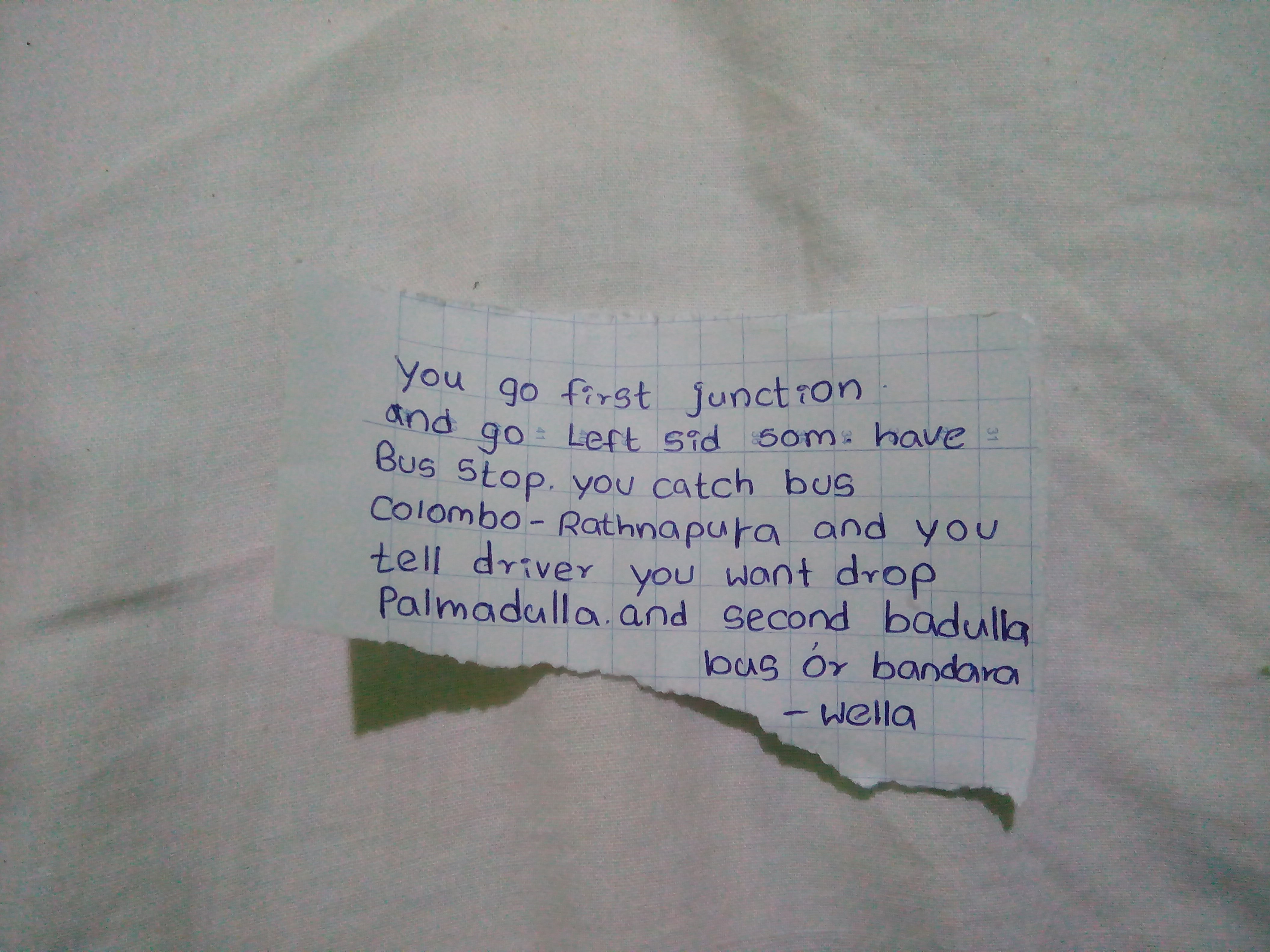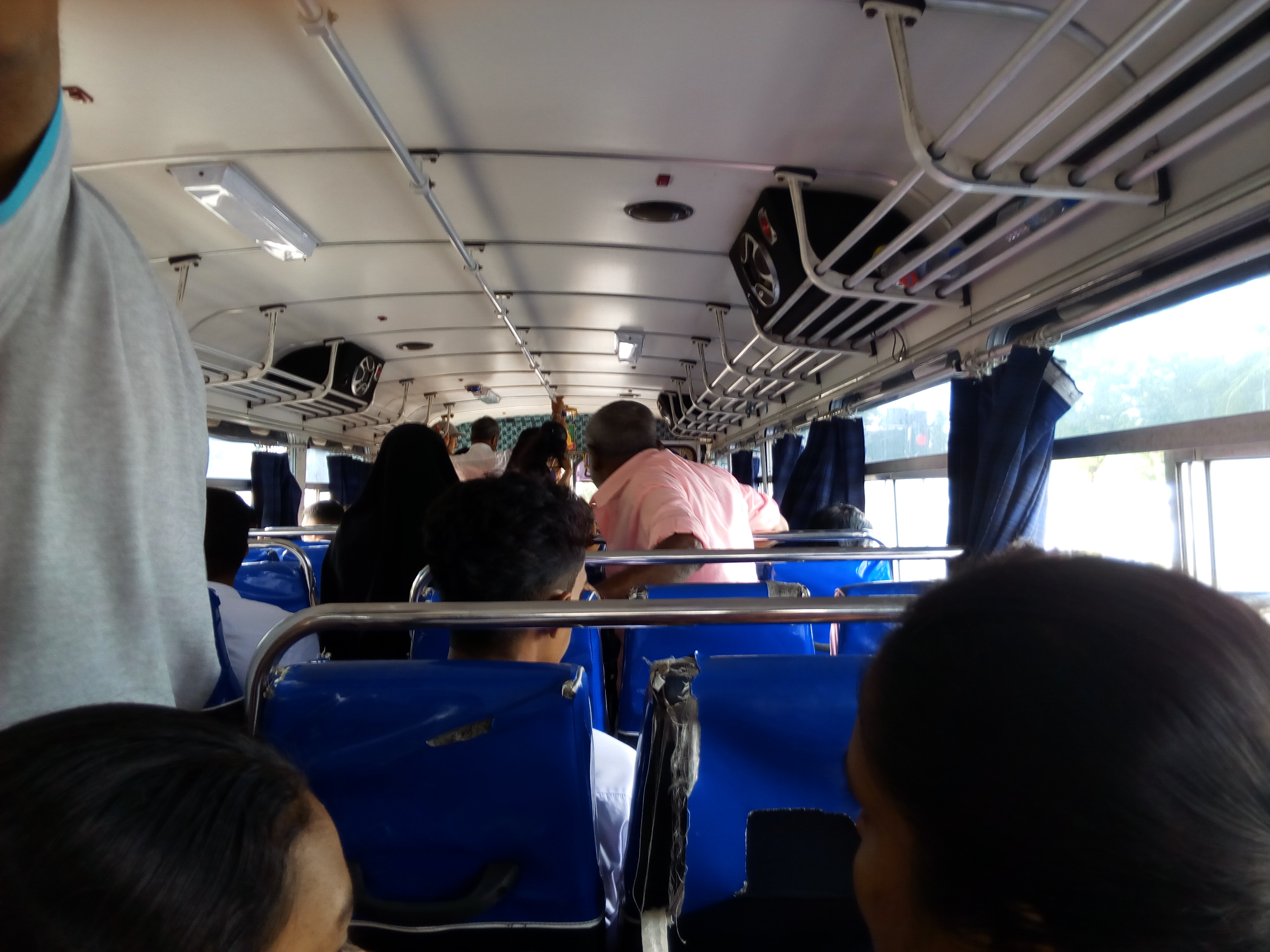 A veure, el tema dels autobusos que van d’una ciutat a una altra mereix un capítol a part. No són autocars, nooooooooo, amb el seu maletero i les seves comoditats, no senyor, són autobusos com de ciutat però dels anys 40 o 30. A la parada no hi ha informació de cap tipus, els autobusos van passant i a dalt posa la destinació final, si aixeques la mà mig para però tot just poses el peu a l’escala arrenca, la gent corre per pujar-se, i jo amb la motxilla gran, el bus és petit i estret i el primer d’aquest matí ja anava ple. Aleshores, tu et puges i seus si pots, sinó hi ha lloc et quedes mig encastada enmig del passadís sense poder-te donar la volta sense arrencar-li el cap a algú amb la motxilla. El cas és que hi ha una mena de cobrador que va passant i cobrant, el primer trajecte l’estació d’autobusos de Matarà m’ha costat 50 rupies (0.32€) molt flipant. Aquest noi que estava al darrere m’anava indicant que anés cap a ell per no col·lapsar el passadís. Finalment he pogut encabir en cul, i la motxilla en un seient. (Nota mental, si vaig amb la motxilla haig d’intentar quedar-me el més aprop de la porta possible). El cas és que li he preguntat al noi pel bus a Uda Walawa i s’ha enrollat mogollón, no només m’ha senyalat quin autobús era sinó que m’ha dit que sortia en cinc minuts i sinó a l’hora següent. He saltat del bus i mentre anava cap a l’altre tothom saludant-me i preguntant-me a on anava i ajudant-me, de debó estic al·lcuinant amb l’amable que és la gent i les ganes d’ajudar que tenen. Bé, nou bus cap a destinació final, li pregunto al cobrador, unes tres hores i mitja 140 rupias (0.90€ per 120 km.) Més flipada encara. Els autobusos van com bojos, a tota pastilla esquivant tuk-tuks, camions, cotxes i tot Cristo que se’ls hi planti davant i per suposat tocant el clàxon que he acabat amb mal de cap. Per sort he pogut seure en un seient doble i només una petita estona s’ha segut una noia i per tant la motxilla a sobre meu. A mig camí parada tècnica per pixar, dada súper important. I deixar molt clar a on vull baixar.