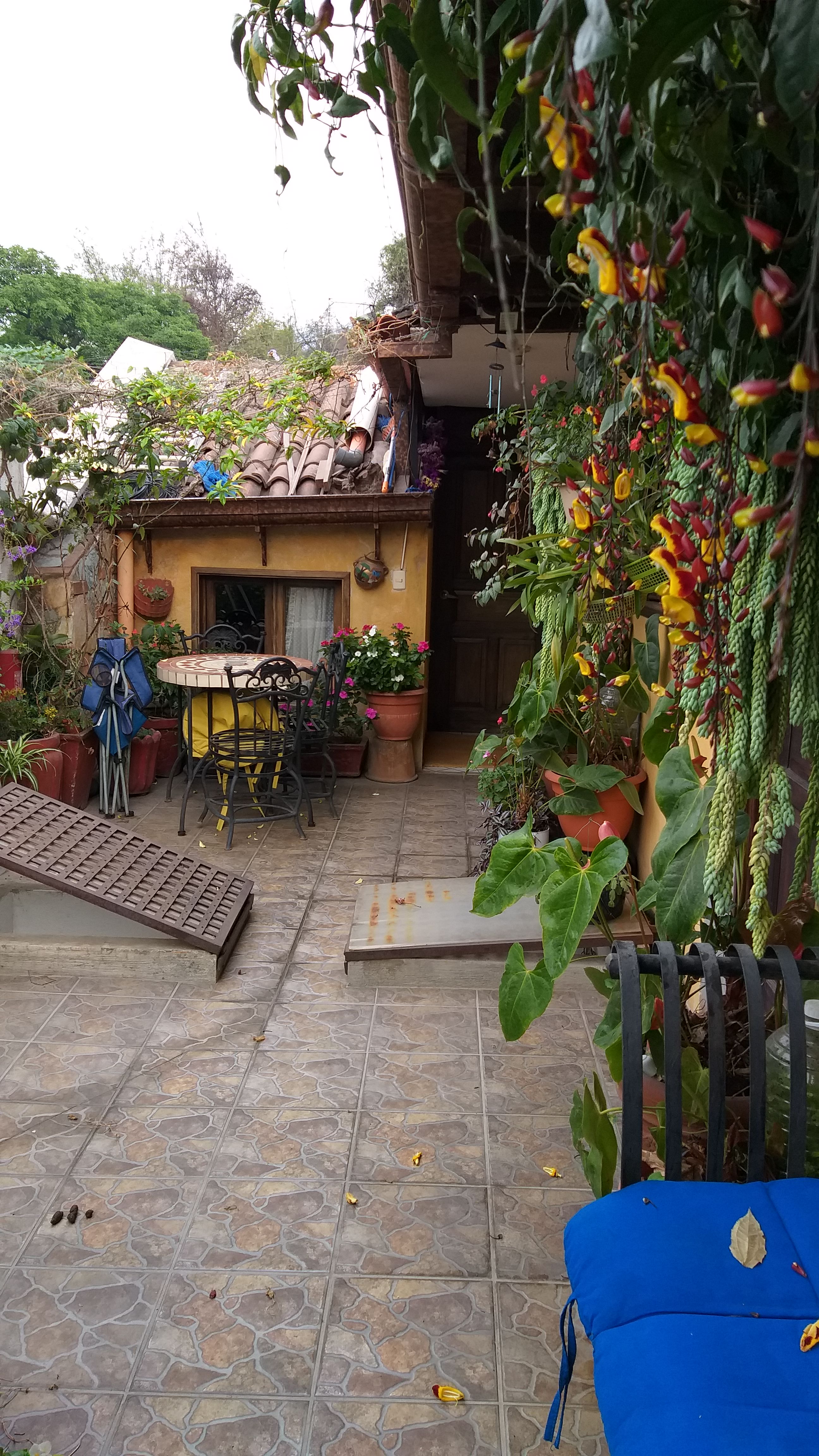 Ahir vaig arribar a Antigua després de quasi dues hores des de l’aeroport en shuttle (petites furgonetes que recullen gent i et porten a la porta de l’allotjament). Hora de Barcelona 23:30 (em vaig aixecar a les 6.45) hora local les 18:30. L’allotjament és una casa particular que té vàries habitacions per hostes i un petit pati ple de plantes. Amàlia, la senyora que viu allà és adorable i em va confirmar que el senyor Google sempre s’equivoca amb el temps (fa un dia i mig que hi sóc i ni una gota de pluja,  malgrat això vaig carregant el paraigües,  em dec d’haver quedat traumatitzada quan ho vaig mirar fa uns dies, està clar). Encara i així està ennuvolat i és una pena perquè Antigua està rodejada de volcans que en dies assolejats ressalten a l’horitzó i amb aquesta boirina quasi no es veuen.
