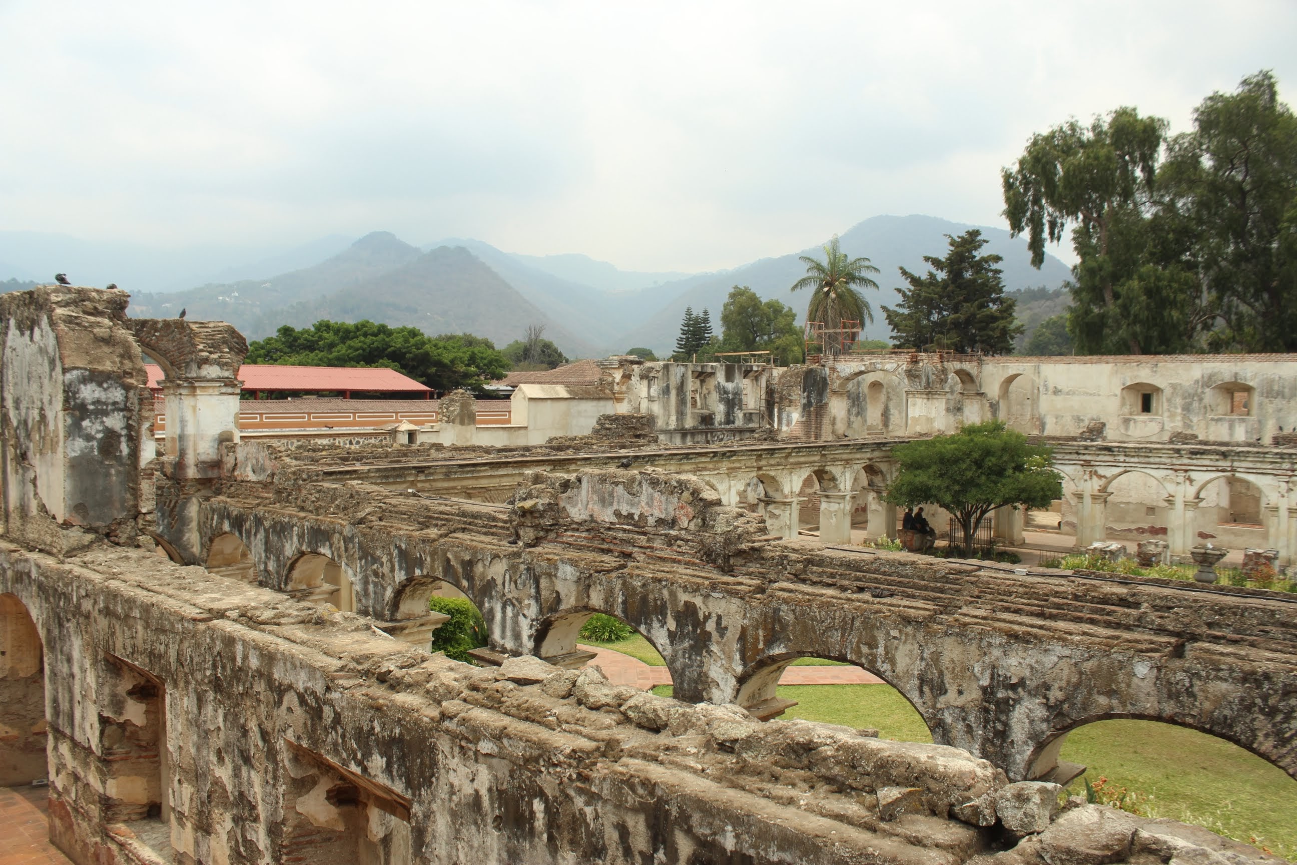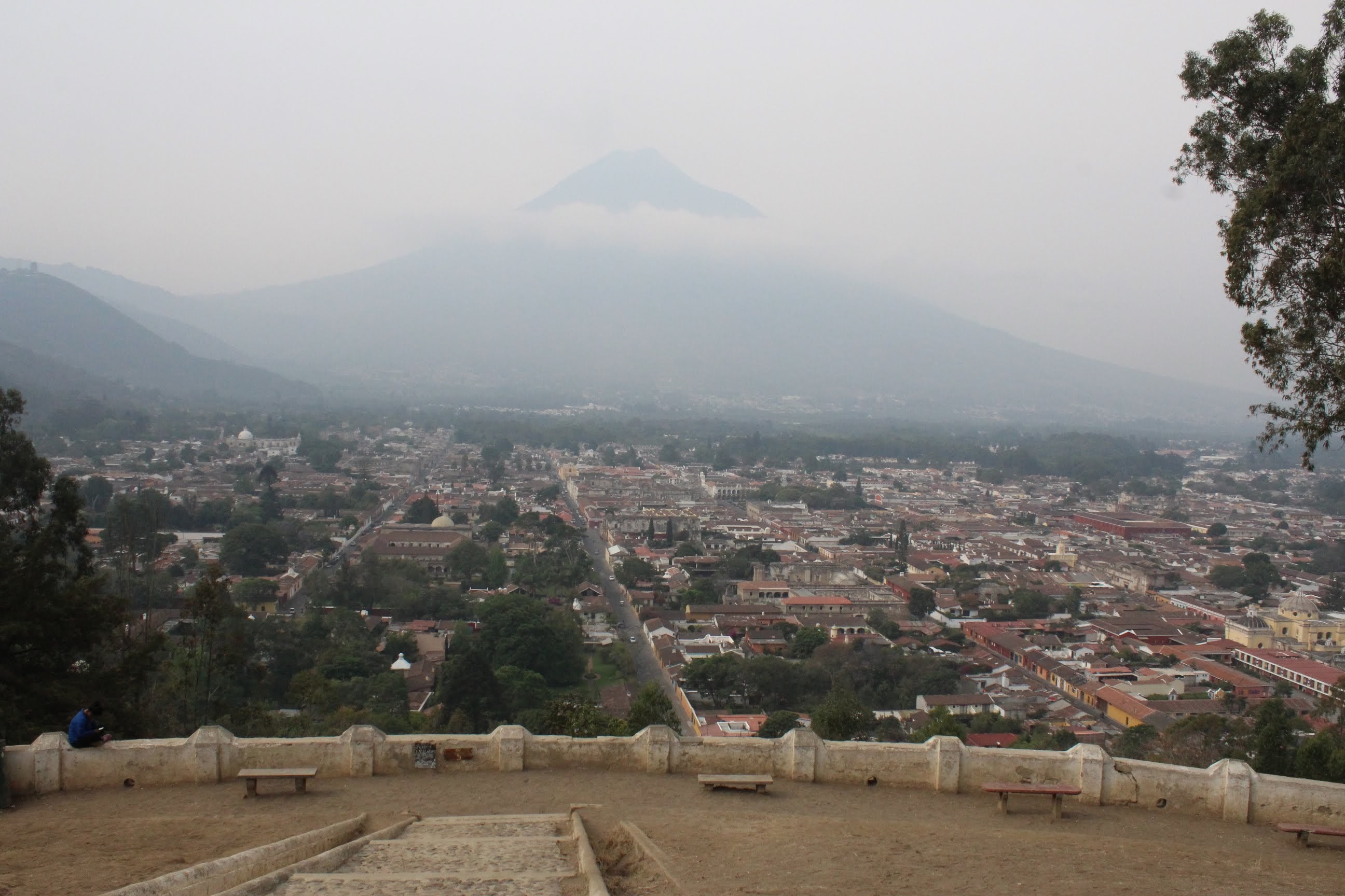 He pujat a un petit turó «el cerro de la cruz» des del que hi han vistes de la ciutat i del volcà si no estigués ennuvolat. En baixar he fet un recorregut per diferents convents i esglésies en ruïnes. Antigua n’està plena arran d’un terratrèmol el 1773 que va destruir la ciutat. Les ruïnes de la catedral i del convent de Santa Clara són impressionants i la ciutat en si és una cucada, amb aire colonial, totes les cases són baixes amb façanes de colors i patis interiors, carrers empedrats i places arbrades.La gent és somrient i dolça i tothom saluda. La ciutat és dinàmica i alegre amb molts estrangers joves que vénen a aprendre el castellà.