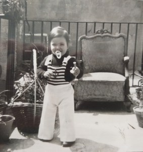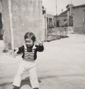 En el terrat dels iaios amb un anyet.