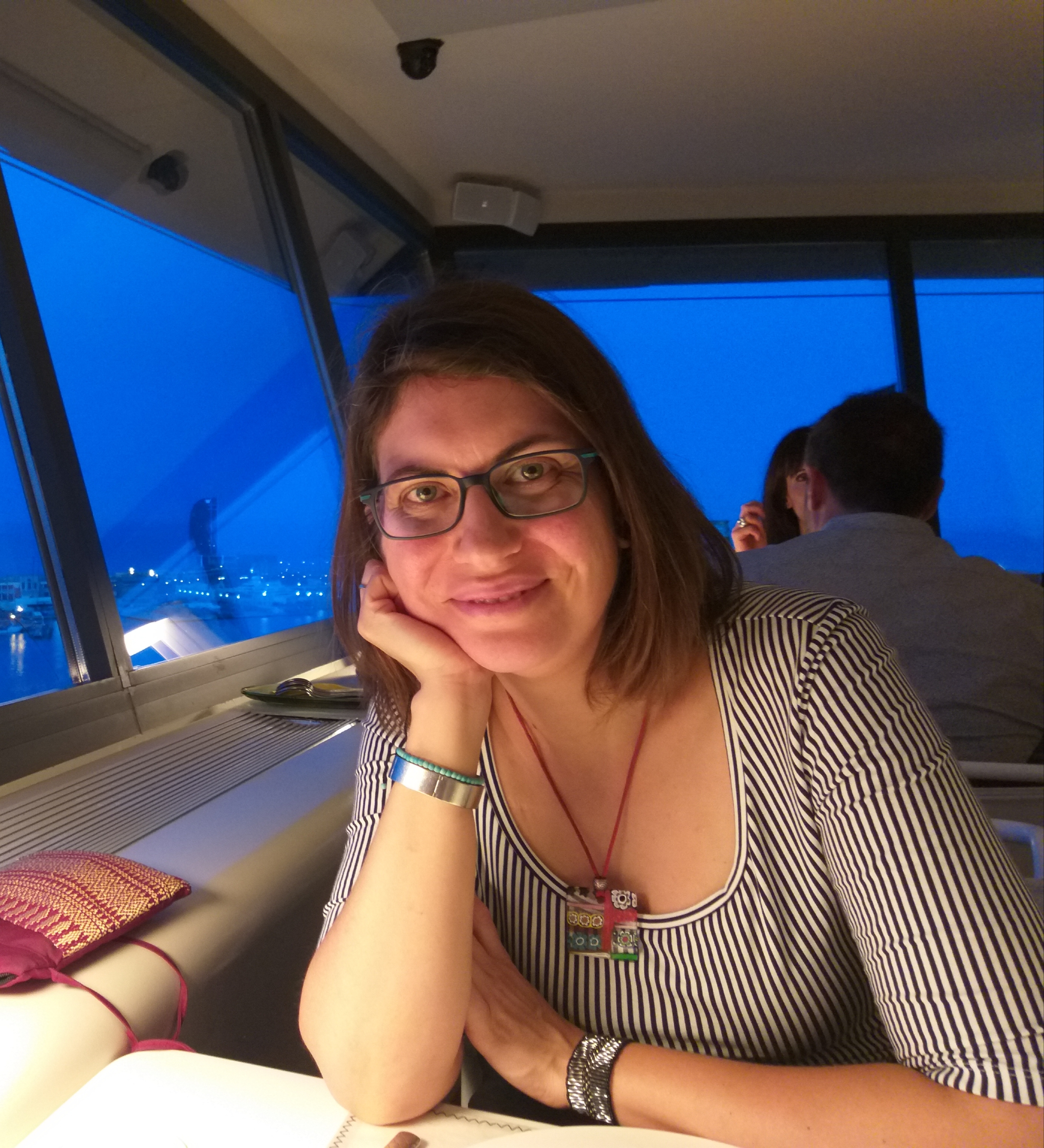 La iaia era portera d’una finca situada al final de la Rambla i com era costum a l’època, els porters vivien al minúscul habitatge sobreconstruït al terrat. Era un espai petit i vell, bàsic. Màgic per a una nena de 4 o 5 anyets. Teníem accés a un gran terrat amb diverses estructures per a dipòsits d’aigua i trasters abandonats que li conferien un aspecte laberíntic i misteriós ideal per a jugar a fet i amagar. Des d’allà vèiem tota la ciutat. Per damunt de tot sobresortia l’Edifici Colón, ostentosament anomenat gratacel. Per aquella època vam viure a casa dels iaios un temps. Moltes nits em quedava embadalida mirant, a través del vidre de la balconada que donava al terrat, el perfil imponent de l’edifici amb unes quantes finestres iluminades. M’imaginava que era un edifici de luxe com el del «Coloso en llamas» i que s’estava celebrant una gran festa amb tot de gent rica elegantment vestida a l’estil de «Vacaciones en el mar». M’imaginava a les dones amb el cabell ros i cardat i els ulls pintats amb ombra blava i rostres brillants pel maquillatge com marcaven els cànons dels meravellosos anys 70. Collars de perles, llargs vestits i sabates amb tacons d’infart i per damunt de tot, grans somriures il•luminant les seves felices cares reflex de les seves felices i riques vides. I allà, darrere el vidre d’aquell humil espai em deia que quan fos gran asistiria a aquelles festes, amb el cabell cardat i maquillada amb ombra blava i rostre brillant i amb un espectacular vestit llarg i tacons d’infart, lluint un meravellós somriure de dona rica i feliç.