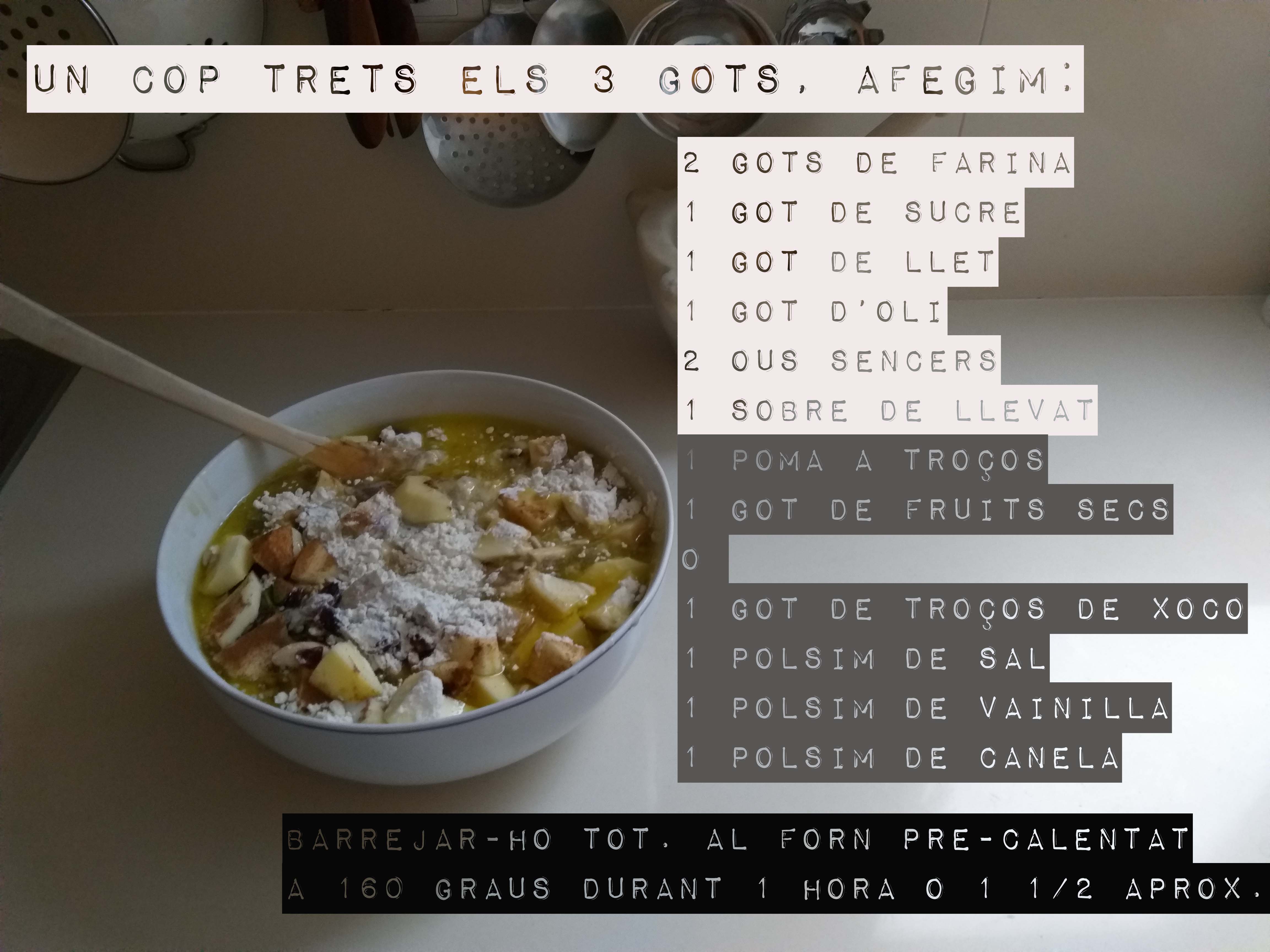 Ingredients totals: La mida és de got, podeu agafar un got petit si no voleu que us surti molt gran.