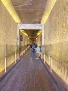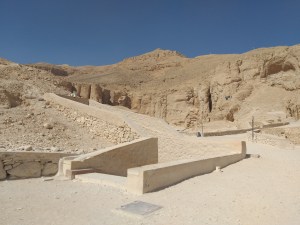 El matí ha sigut molt intens. Primera parada La Vall dels Reis. Una Vall entre montanyes desértiques en la qual s’han descobert 63 tombes reials. Les tombes estan escavades a la roca. L’elecció del lloc probablement es devia donar a, la duresa de la roca, la sequetat de l’ambient, l’aïllament del lloc. Es poden visitar (no sé si totes). Per la de Tutankamon s’ha de pagar a part, la tumba està buida, es veu que només està la mòmia, tot el tresor està al Museu de El Caire. Nosaltres hem visitat 3. La més gran de Merenptah. Baixa uns quants metres fins a arribar a una gran cambra. Impressiona pensar que ho van excavar a la roca. La segona de Ramses III. Més petita però amb una ornamemtació molt més bonica. I la tercera la de Ramses IX també amb molta decoració. La immensitat del lloc, l’ambient àrid i desèrtic, i saber tot el què amaga confereixen una sensació especial. En sortir devien de ser les 8.45 i ja queia un sol d’espant. Sort que anàvem en cotxe nou amb aire condicionat..