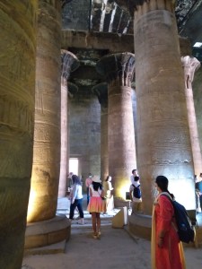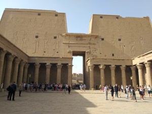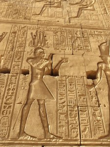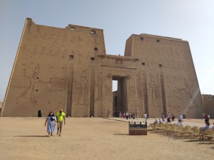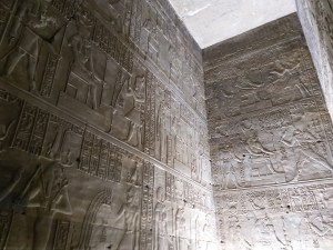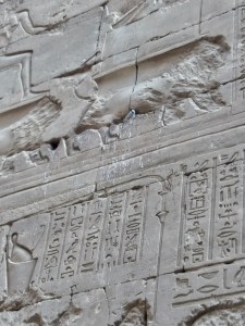Aquest temple també és de l’època Ptolomaica i està dedicat al deu Horus i a Seti que reencarnen el bé i el mal. Segueix els mateixos patrons que els anteriors que vam visitar. Està absolutament cobert per relleus. Té una petita sala on s’expliquen les classes de flors i les fórmules per fer essències. També va ser víctima de l’afàn dels cristians per destrossar les representacions faraóniques.