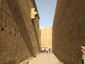 El Temple d’Edfú ens ha impressionat. Fins a finals del S.XVIII va estar sepultat per la sorra, !!!!! Només sobresortien les parts més altes. I això que és el segon més alt dels temples coneguts. Això ha fet que estigui prácticament sencer i sigui el millor conservat de tot Egipte.