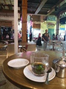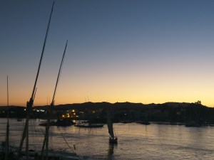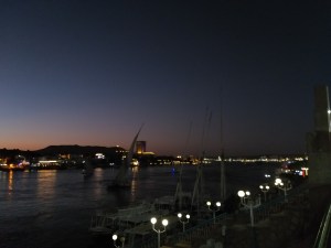 En sortir hem començat a passejar per la Corniche, el passeig al costat del riu. Estan en obres (per variar) i està tot el passeig aixecat. No hi havia ningú, ni gent ni cotxes. Hem vist la posta de sol i ens hem dirigit cap a uns carrers on hi ha el bassar. Conforme s’ha anat fent de nit ha aparegut la gent. Als botiguers del Bassar els he trobat molt pessats, d’aquests que se’t tiren a sobre a matxacar. Hem près un té en un bar obert al carrer i ha estat una estona molt agradable. Després hem comprat fruita i dàtils. Quan hem tornat a la Corniche l’ambient havia canviat radicalment. Cotxes pitant, molta gent, música a tot drap. Hem estat una altra estoneta en un parc amb bancs mig trencats mirant el riu. I finalment hem tornat per intentar descansar. Demà volem aixecar-nos aviat per aprofitar el matí i evitar les hores del migdia.