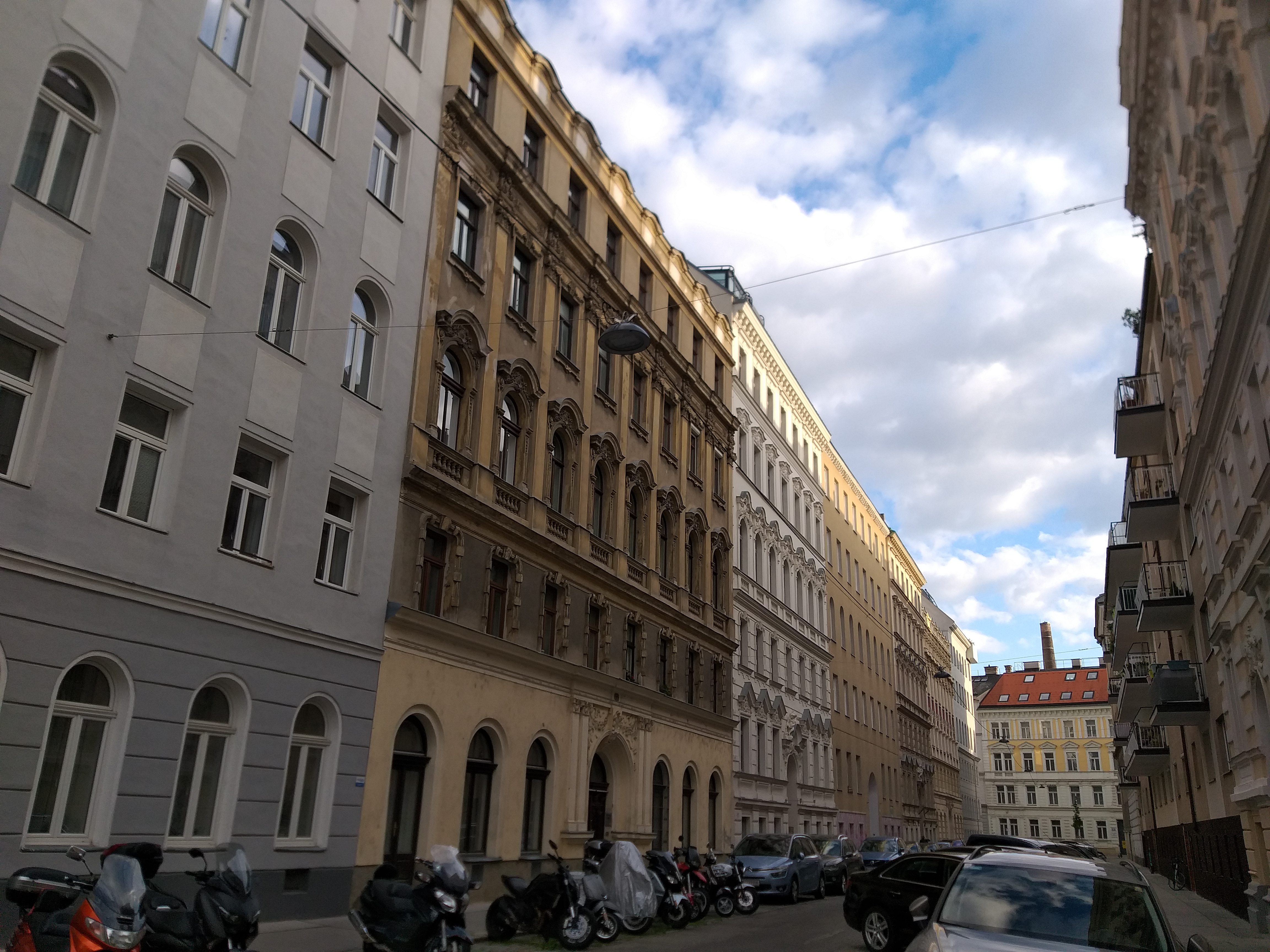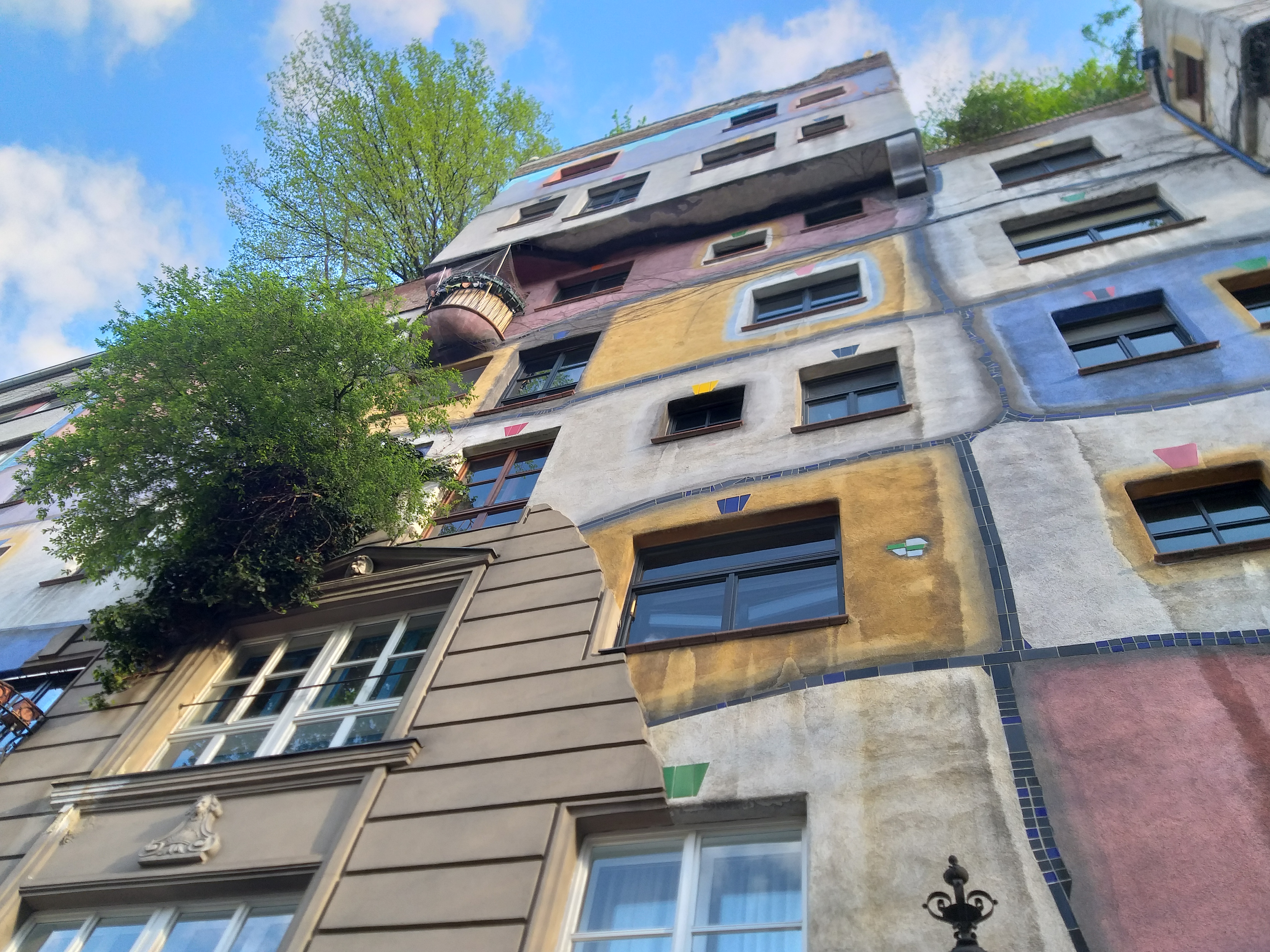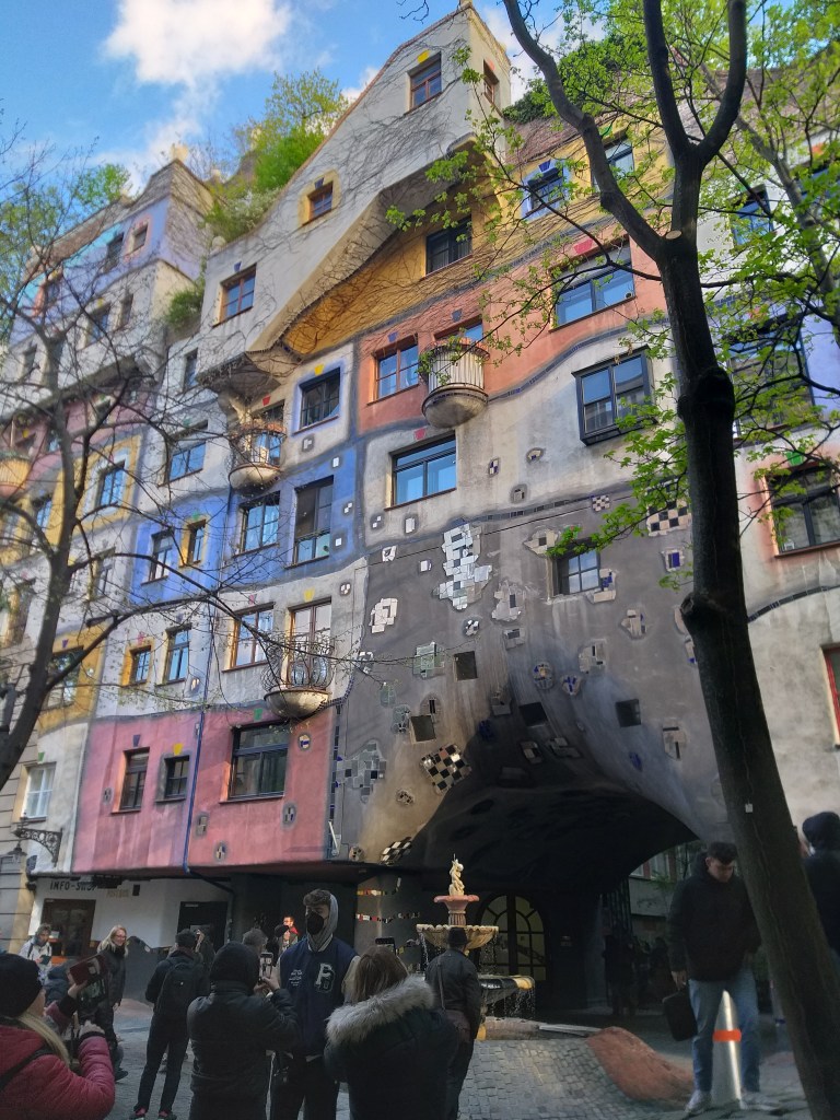 També hem anat a veure l’edifici Hundertwasserhaus característic per semblar una mica de compte de follets i que contrasta amb la geometria i la perfecció de la resta d’arquitectura. Viena és perfecta, monumental, amb uns edificis impecables, en tons pastel i blanc. Neta i brillant malgrat estigui ennovulat. M’ha cridat l’atenció que en la majoria de carrers no hi han arbres i per tant, llueixen molt més els edificis i el terra està molt més net però també li confereix un aspecte no sé, com més fred, més desangelat. Trobava a faltar l’arbrada barcelonina malgrat l’alergia i la sucietat primaveral.