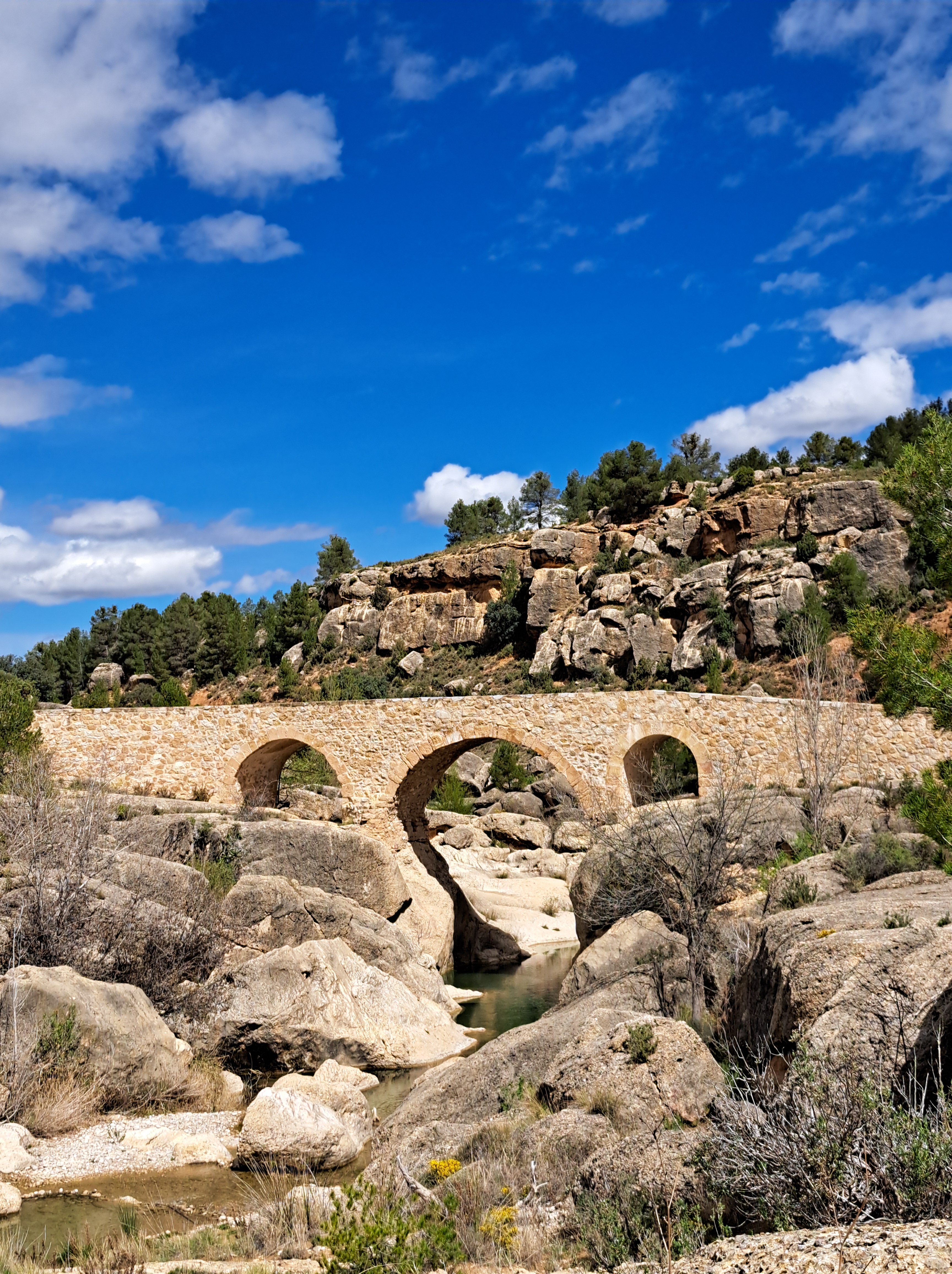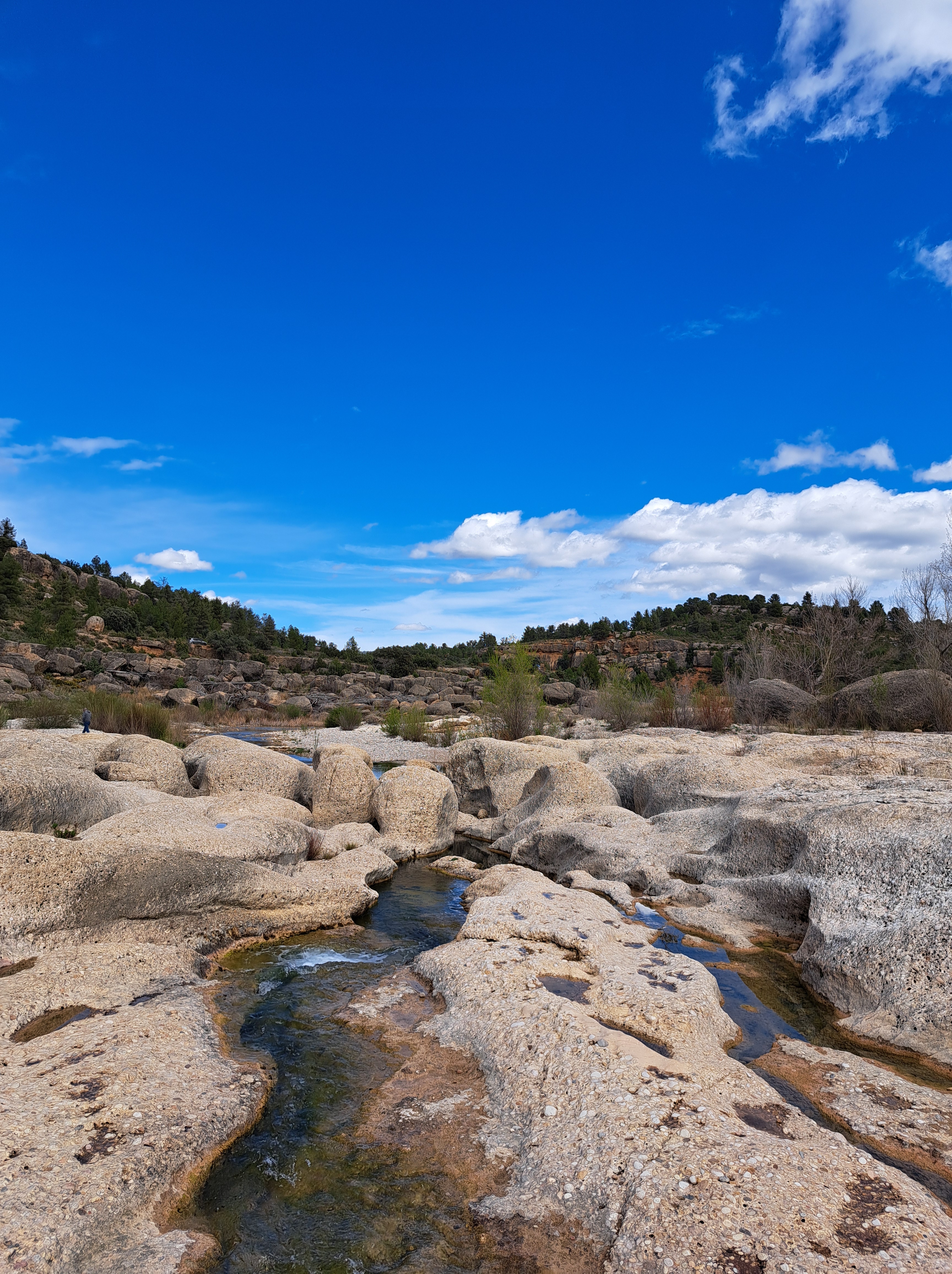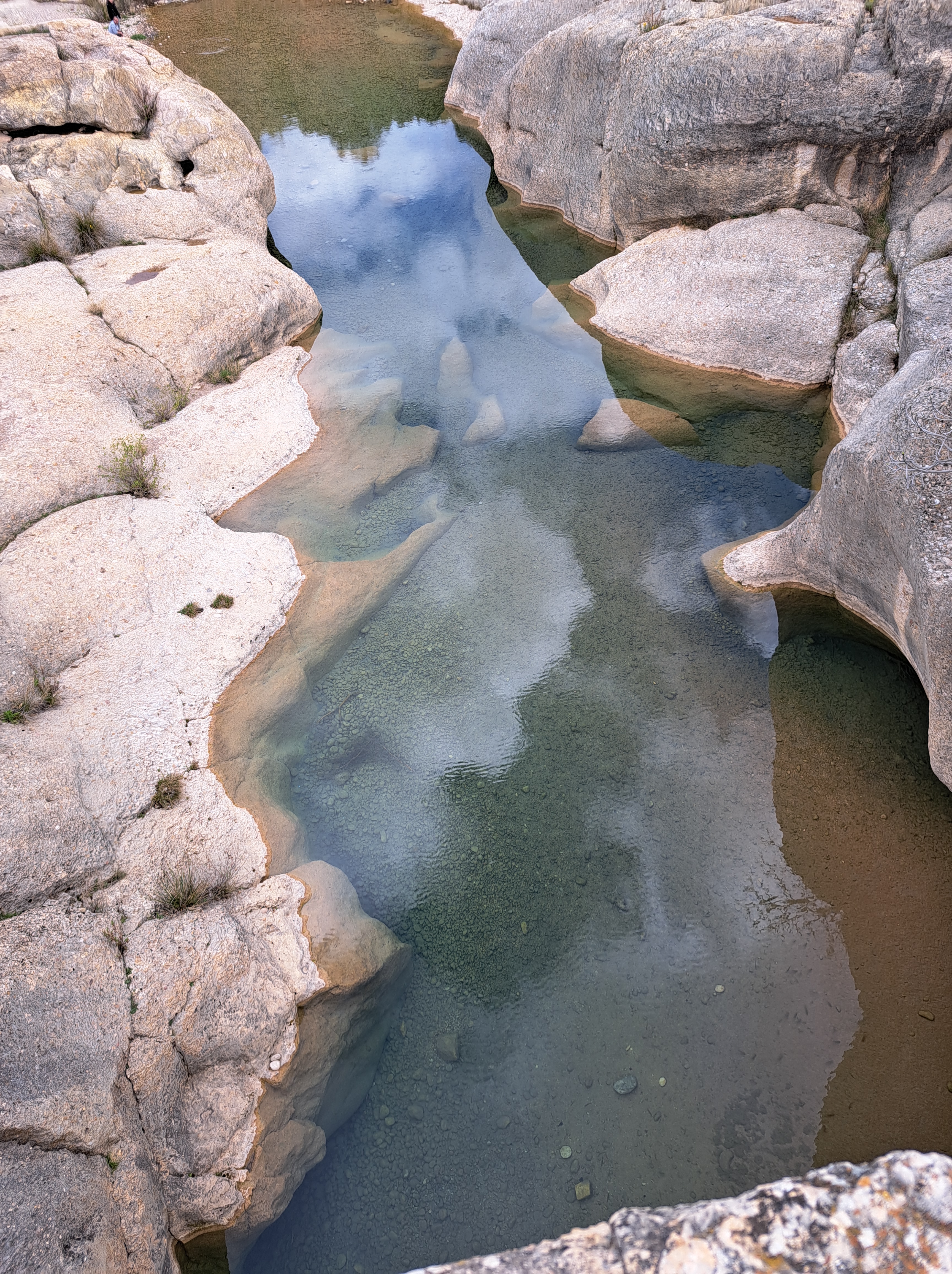 Un cop acabat el segon esmorzar i després de passar pel súper, Abenfigo no en té i és costum fer les compres al Mas de les Mates, ens vam dirigir amb el cotxe cap al Pont de Cananilles, una petita ruta que passa al costat d’un riu que ha deformat les roques i s’han creat petits gorgs, a l’estiu tothom va a banyar-se.