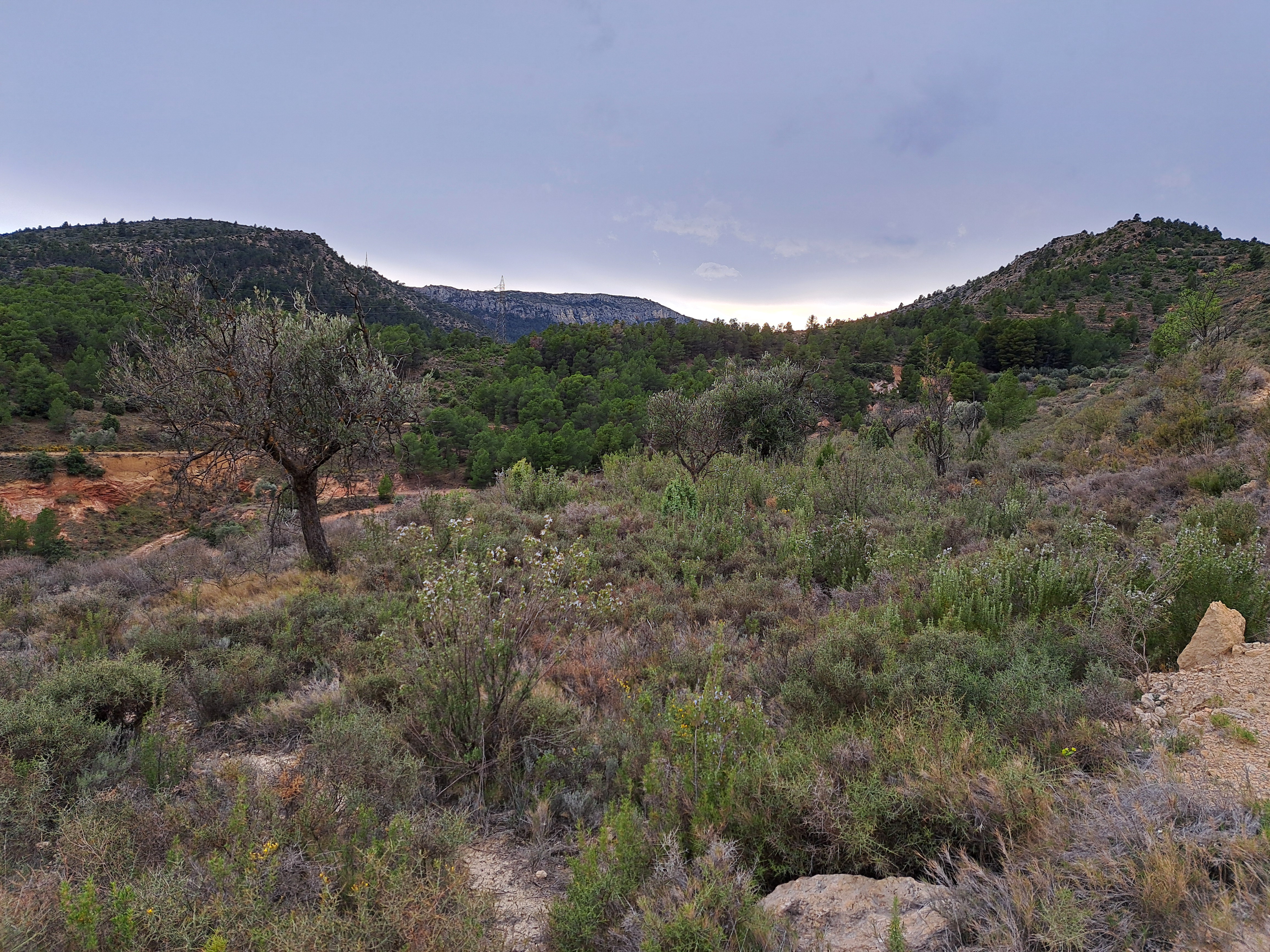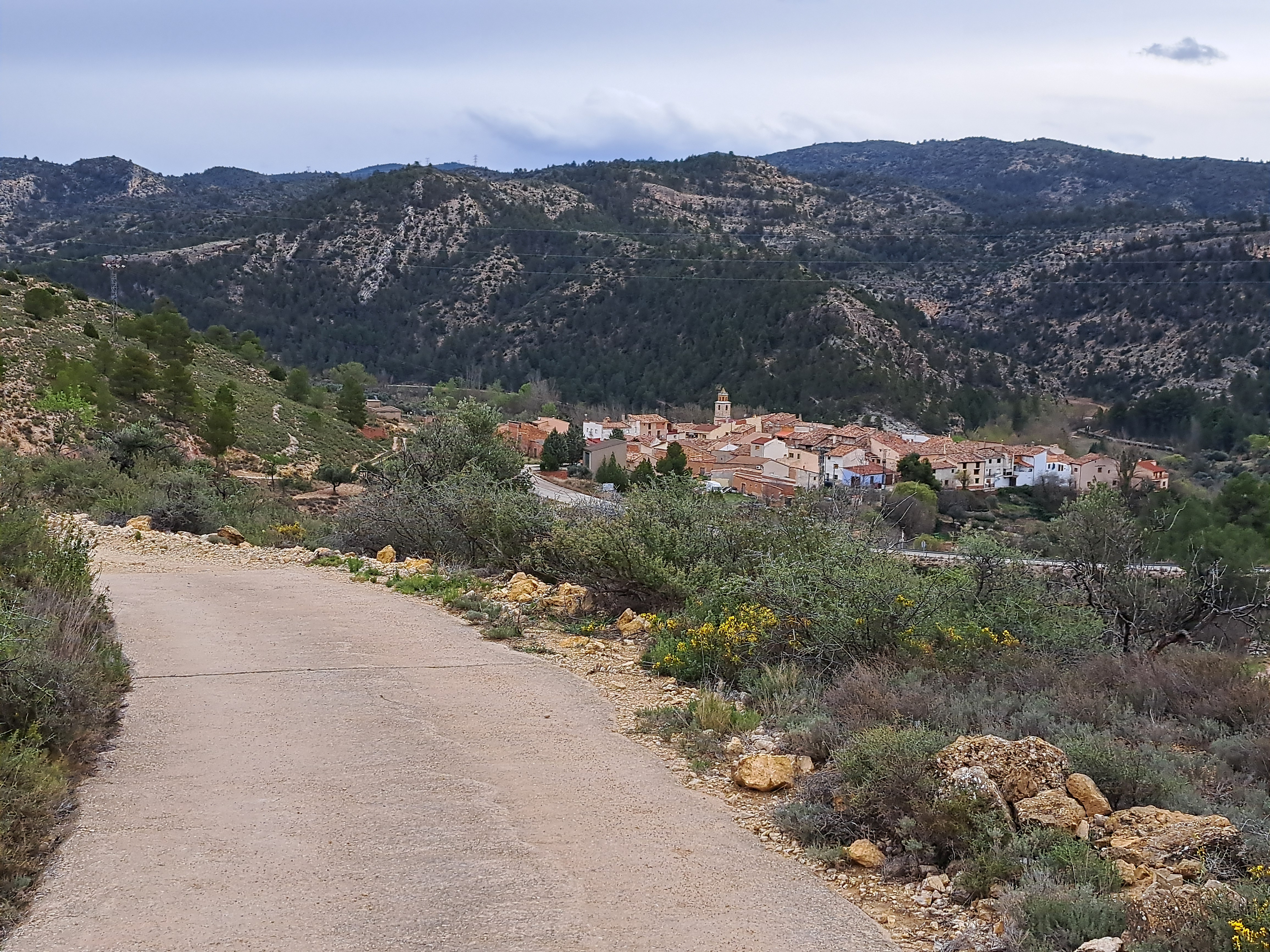 La tarda la vam aprofitar per visitar la «Valella» unes terrasses a la part de dalt del poble, propietat de ma mare, des d’on es veu el poble i a on el meu avi tenia oliveres (que actualment creixen salvatgement) i ametllers que estan tots morts. Malgrat això, el terreny està ple de farigola i romaní i vam aprofitar per fer una bona collita. Després vam passejar per un camí que va cap a una vall tancada que es diu les «Folles» on crec que el meu avi també tenia terres, però jo no sé quines són. De tornada vam visitar el cementiri que és molt petitonet i molt cuco i no en vam fer fotos, quines coses…