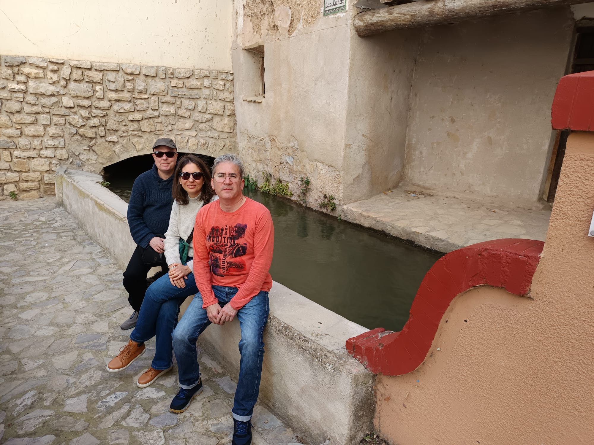 El tercer dia ens va caure en dissabte i vam aprofitar per visitar el mercat ambulant del poble del costat el Mas de las Matas. A la plaça del poble hi havia un parell de paradetes de verdures on vam comprar uns manats d’espinacs frescos boníssims per compensar una mica els excessos, peeeroò resulta que en el carrer lateral, sota d’unes portalades hi havia un munt de senyores fent in situ tot de pastes dolces fregides, tipus rosquilles, tortes, flors i uns bollitos farcits de crema que ens deien menja’m, menja’m i és clar, no vam tenir més remei que comprar una bossa de cada, perquè anaven en bossa, malgrat que a les rosquilles i a les flors no vam arribar, però vam aconseguir tres tipus diferents de dolços i amb una ansia desfermada vam apropar-nos a una zona de safareigs a delectar-nos amb el segon esmorzar del dia. Fotos de la portalada amb les dones preparant els dolços no en tenim (error), ni de nosaltres menjant com marrans en mig del carrer, tampoc, estàvem massa ocupats. Però si tenim fotos dels impressionants safareigs, el poble té una ruta de l’aigua la mar d’interessant.