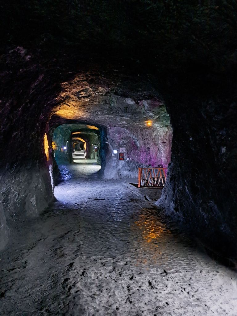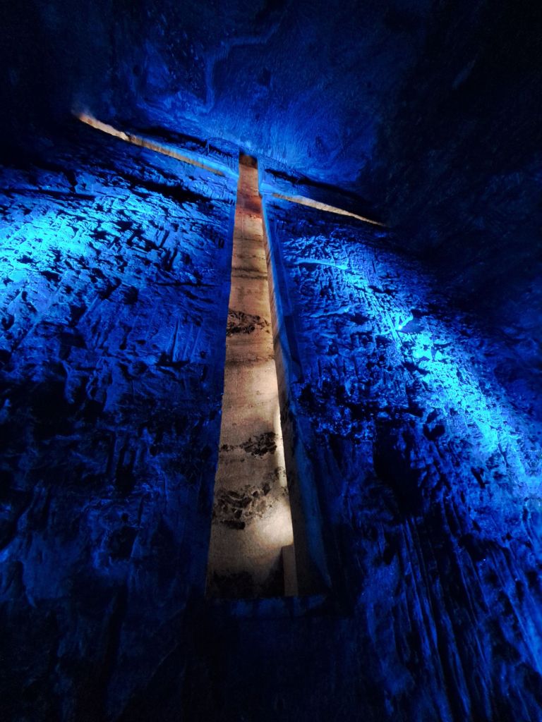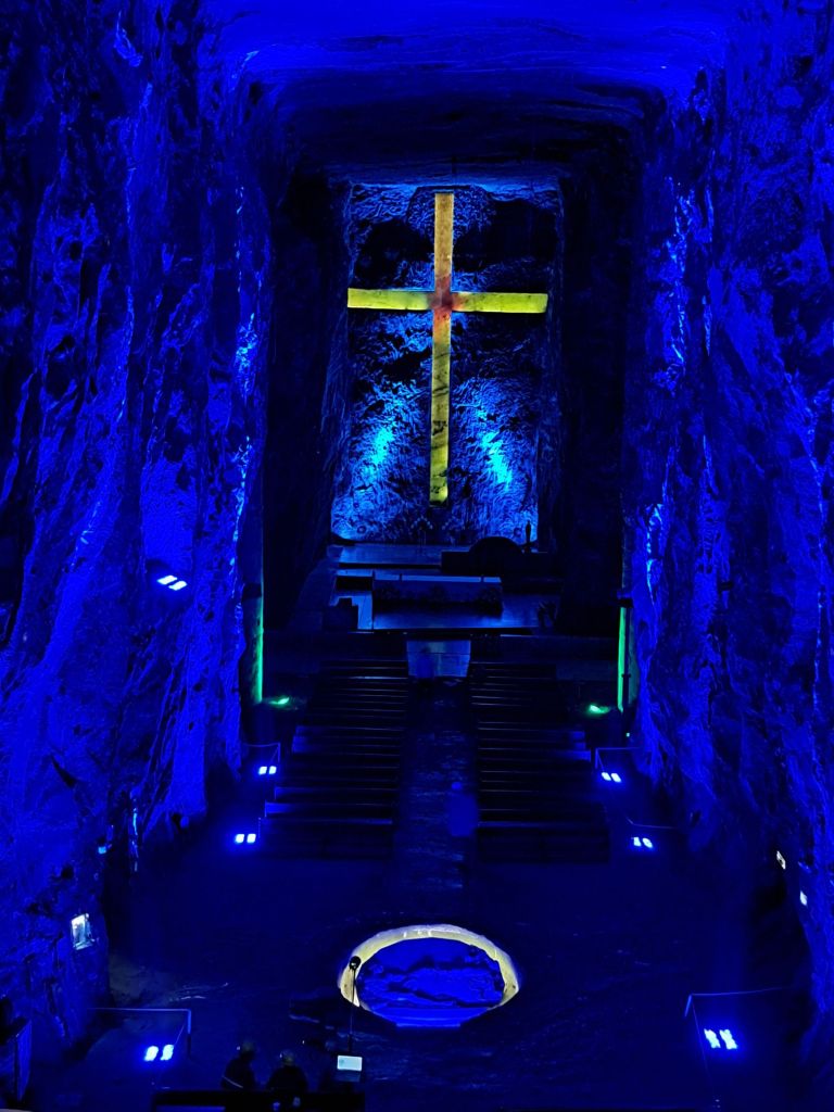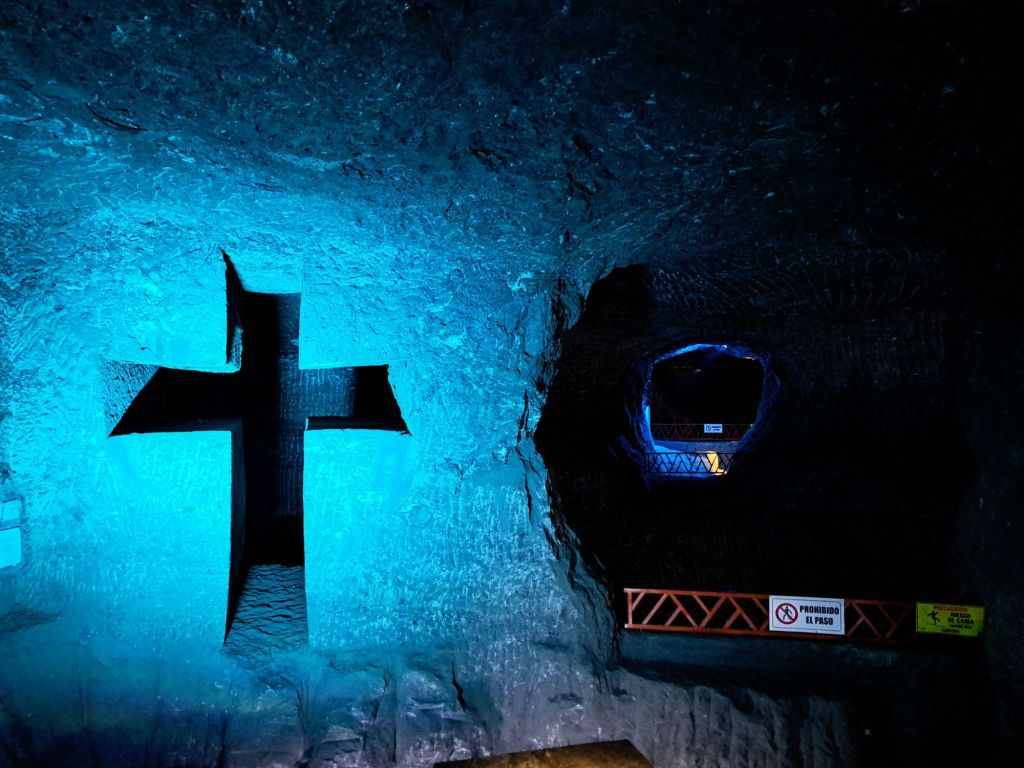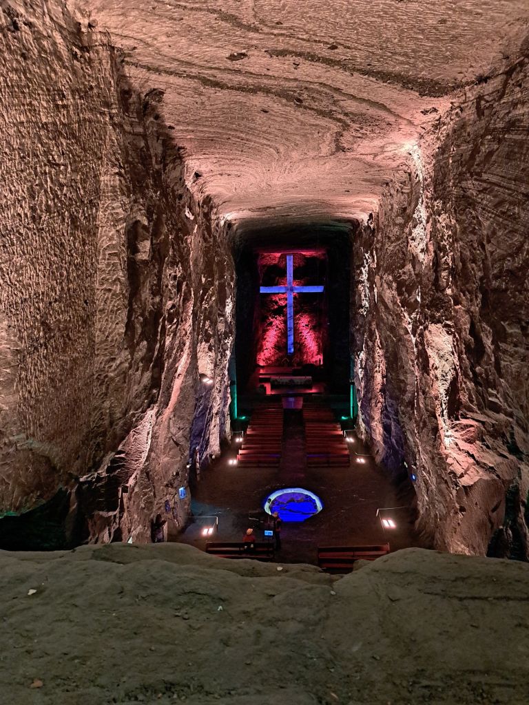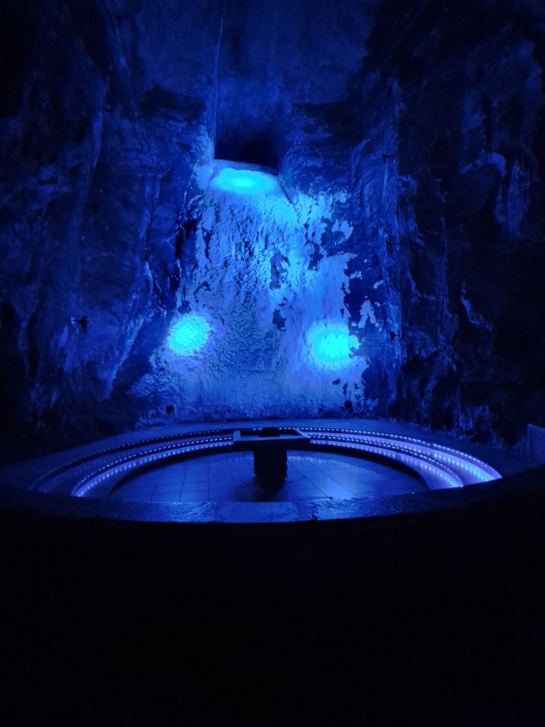 A veure, a tocar del poble hi ha una muntanyeta que és una mina de sal. Aquesta mina està treballada des de l’època precolombina i s’ha explotat en tres nivells diferents. La mina encara està activa en el tercer nivell. Es veu que en el primer, el més antic, fa molts anys ja es va fer una catedral però es va haver de tancar per inestabilitat. A mitjans-finals del S.XX van crear la Catedral actual aprofitant les cavitats creades per l’explotació minera.