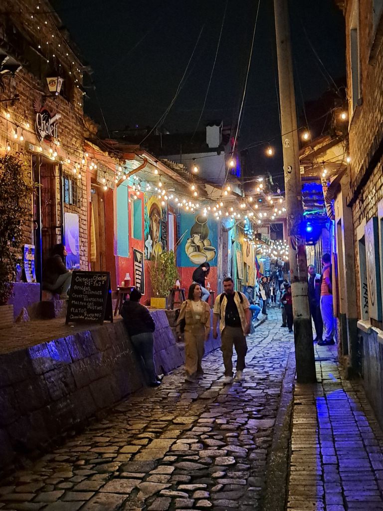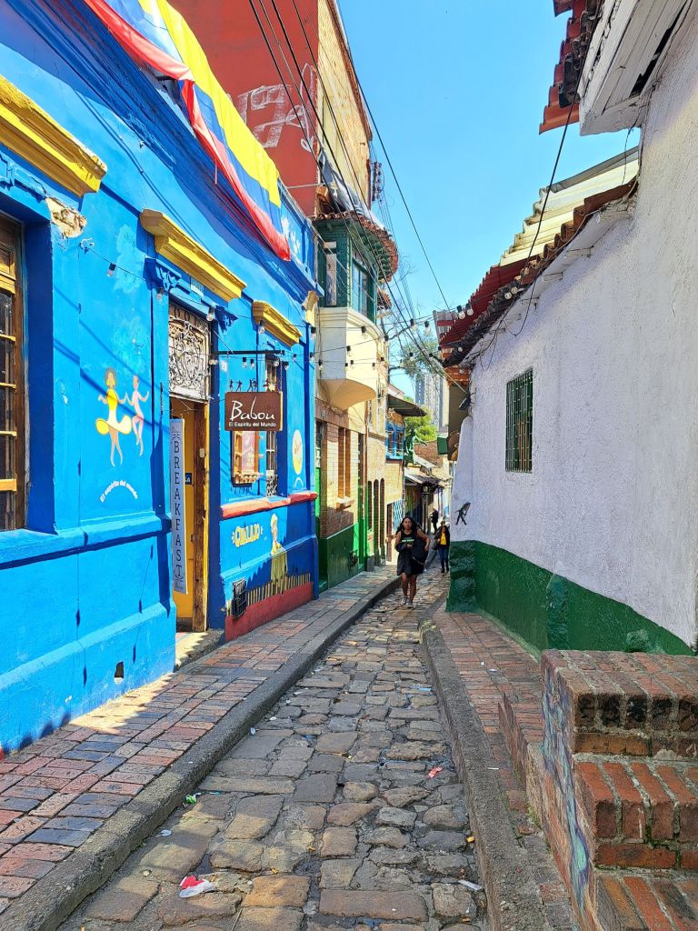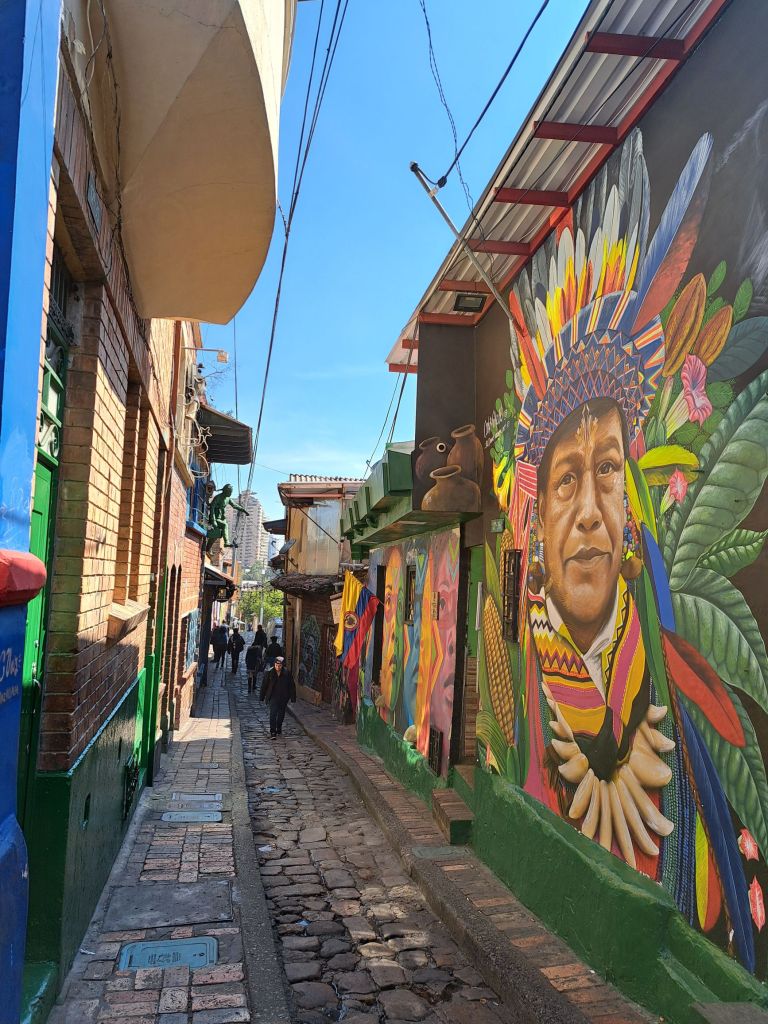 Passarem un parell de dies a Bogotà. Estem allotjats al barri de La Candelaria, centre històric. El barri en sí és pla però en un dels extrems puja cap a un «cerro» i l’allotjament es troba a dalt d’un carrer de pujada. Però tot estar a tocar. Es un barri bonic, ple de cases baixes colorides i amb murals pintats. Moltes cases estan a la venta i sospito que poc a poc s’anirà gentrificant.