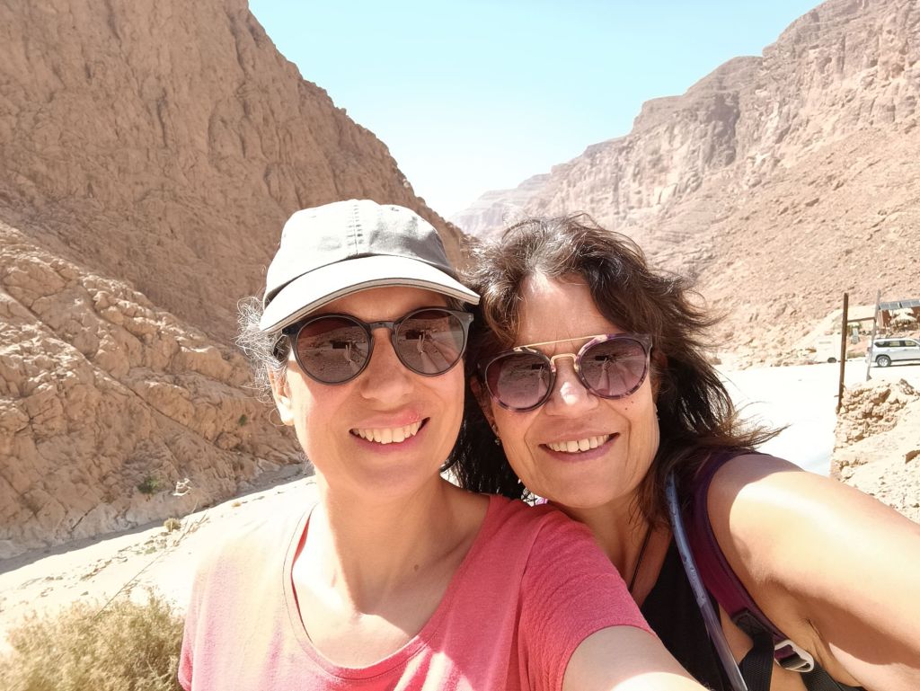Finalment arribem a l’hotel que està a l’inici de la Garganta. Quan deixem les coses anem en direcció contraria, on hi ha el poble, passejant a buscar algun lloc on sopar, però quasibé tot està tancat. Està clar que durant el dia hi ha molta gent i molt de moviment però per la nit està matat perquè aquest lloc és visita de pas cap al desert i la gent no fa nit aquí. Trobem un hostal obert i els hi preguntem si podem sopar i ens diuen que sí. Estem soles. Pugem a la terrassa i esperem molt perquè ens portin els entrepans que hem demanat i que acaben sent dos plats de pollastre amb un sobregit de ceba i tomaquet i patates fregides. No ho qüestionem. Volem sopar. Tornem de nit per la carretera amb una lluna quasi plena i rient de tonteries. Demà serà un altre dia.