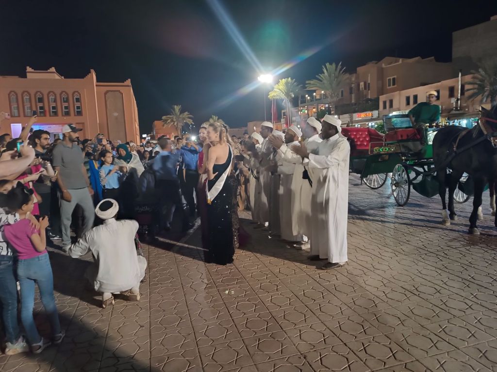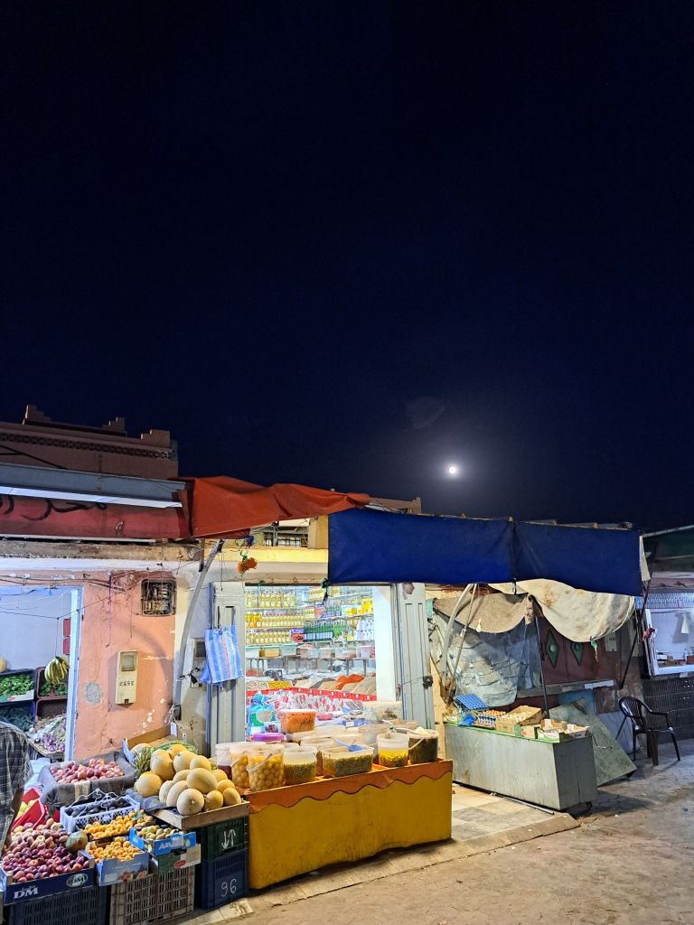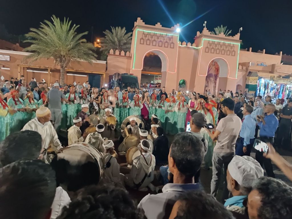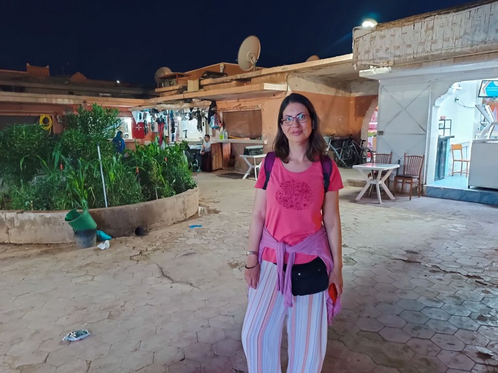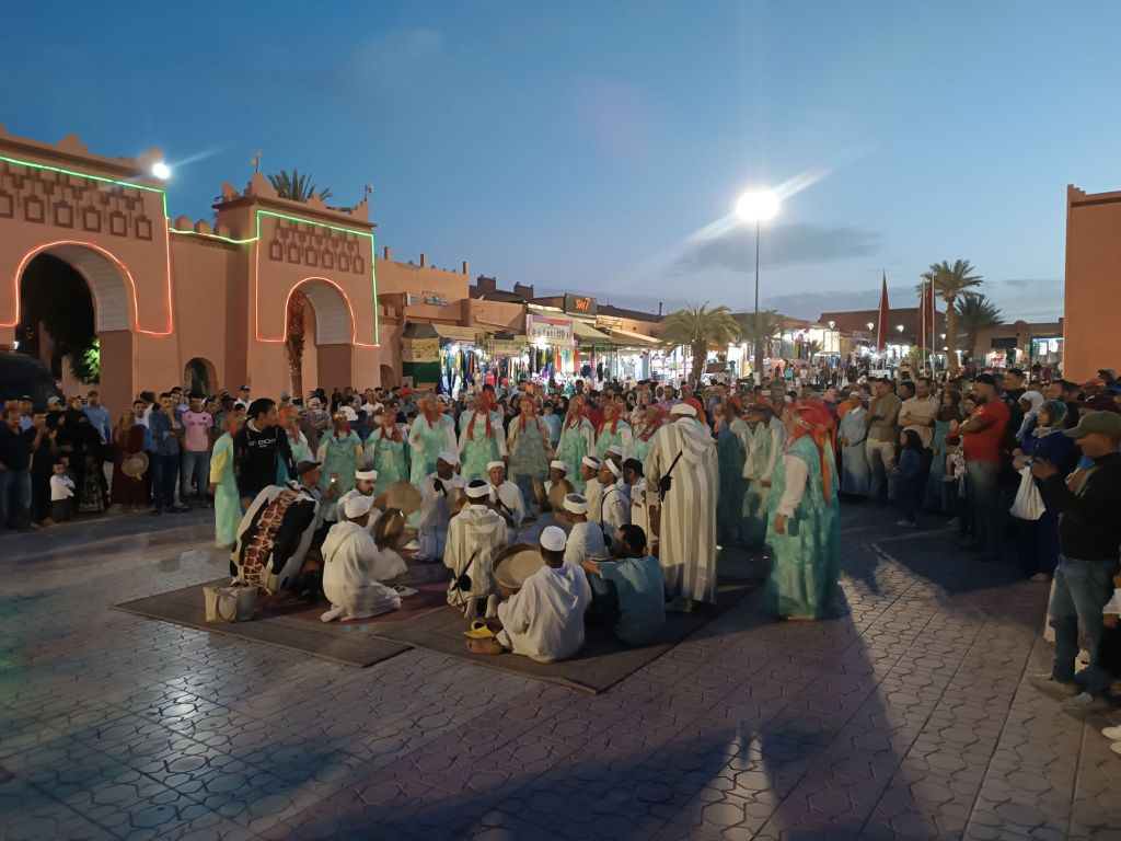 Ens encaminem finalment cap a Ouarzazate on pasarem nit. Arribem amb la posta de sol i ens apropem al centre on hi ha molt d’ambient. En una plaça hi ha gent tocant, cantant i ballant música tradicional. Són varis grups de gent tocant tots alhora. Està a petar de gent. Al voltant de la plaça carrers amb botigues tipo basar i un mercat. Després de fer una volta sopem unes pizzes en una terrassa de la plaça gaudint de l’ambient i jo agafant mal de cap del soroll que se sentía. Estant allà apareix una calesa de la que baixen quatre noies vestides de luju amb una banda creuada al cos i van de grup en grup fent-se fotos. Ma germana pensa que és una celebració d’algun tipus, jo que segur que cada dia hi ha aquest ambient. Cap a les 11 comencen a plegar. Després hem descobert que en uns dies hi ha un festival de música tradicional, però no sabem si hi ha alguna relació.