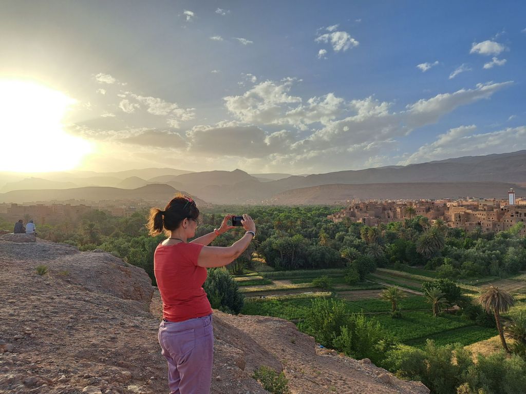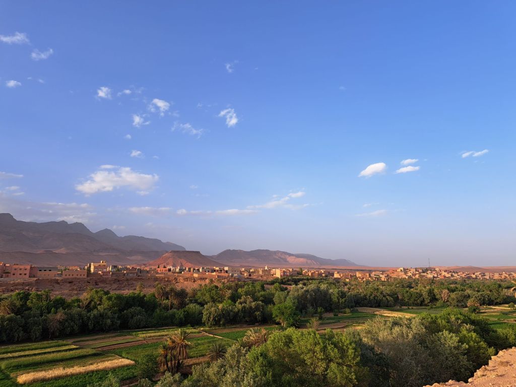 La qüestió es què quan tornem a agafar el cotxe i arranquem, just a la sortida del poble veiem un mirador des d’on es contempla un enorme oasis borejat per restes de Kasbahs i cases de colors realment impresionant.