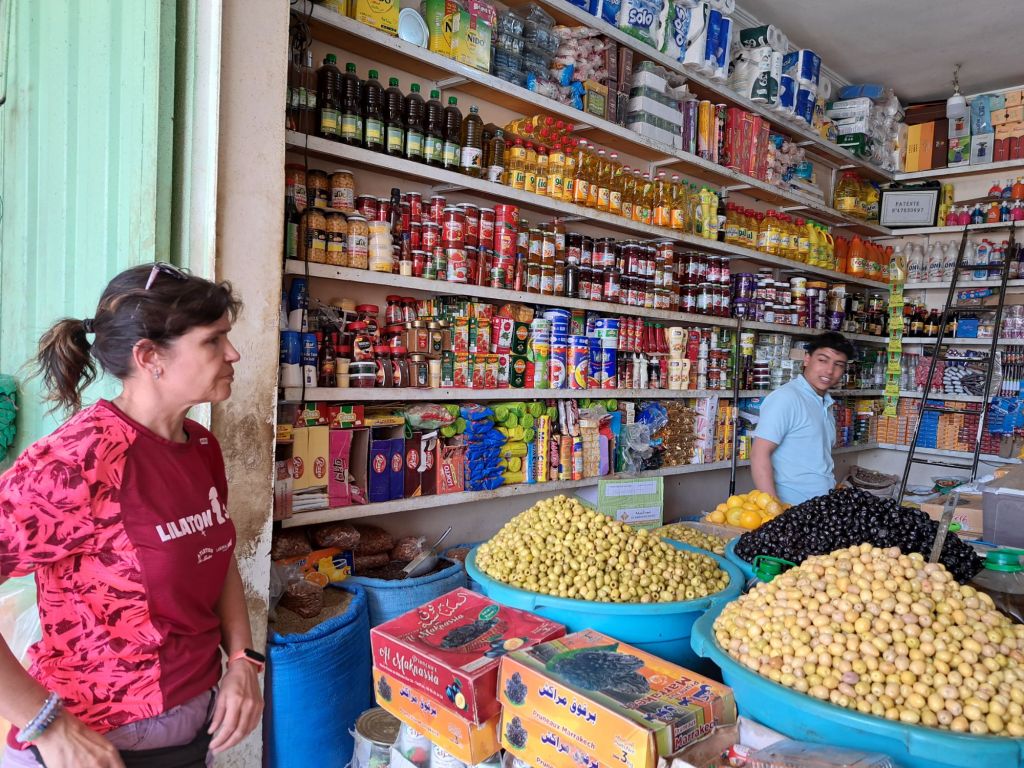 Dinem aquí i marxem en busca de les plantacions de roses. Ho posem en el gps i ens marca 15 minuts. Quan arribem a destí resulta que estem enmig d’un poblet sense res destacable, ningú pel carrer i ens quedem a quadros. Ens mengem l’olla d’on coi estan les roses. Tornem enrere i ens dirigim a la següent destinació i just quan sortim de Kalaat M’Goune comencem a veure botigues de venda de productes relacionats amb les roses. Apareixen petits camps d’uns arbustos que podrien ser rosers. Veiem una cooperativa i entrem a informar-nos. Una noia encantadora ens fa una petita explicació del procés de destilació de les roses i ens comenta que la recolecció es va fer a l’abril. Per això no veiem rosers en flor. Misteri resolt, comprem una mica d’aigua de roses i sabons i continuem camí.