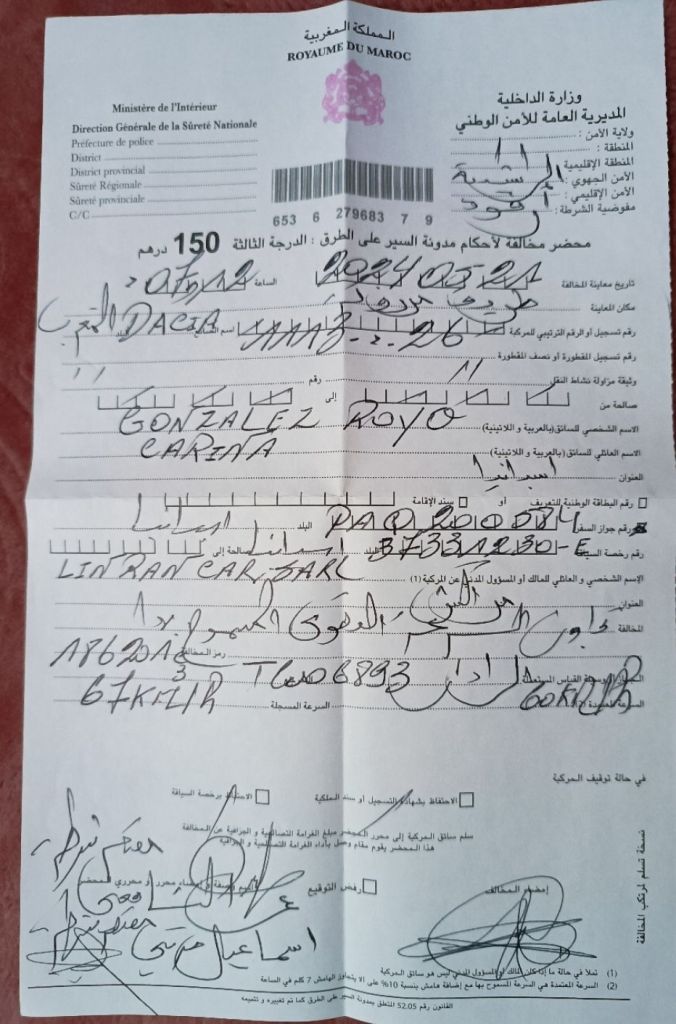 Reprenem la marxa i anem tan felices quan de cop i volta ens para la policia. Els mirem sonrient i ens diuen que ens han de multar per excés de velocitat. Els hi diem que com és possible i ens diuen que el limit estava en 60 km/h amb un marge de 10% per tant 66km/h i que anavem a 67 km/h. Els hi diem que venga va por 1 km. La multa és de 150 dirhams, 15€. Com que sóna a conya a mi no se m’acudeix una altra cosa que regatejar i li dic que en tot cas li pago 80 dirhams. El senyor es posa seriós i ens demana els papers del cotxe i el passaport de la Cari que és qui conduïa. Mentre escriuen la multa el cap intenta fer-se el simpàtic i ens pregunta el típic, d’on som i si ens agrada el país, la Cari li diu que ens agradava fins a aquell moment, em mira a mi i em pregunta si estic enfadada i li dic que per suposat. I doncs res, paguem els 150 dirham i ens deixen seguir.