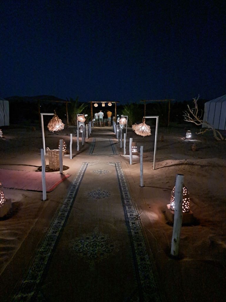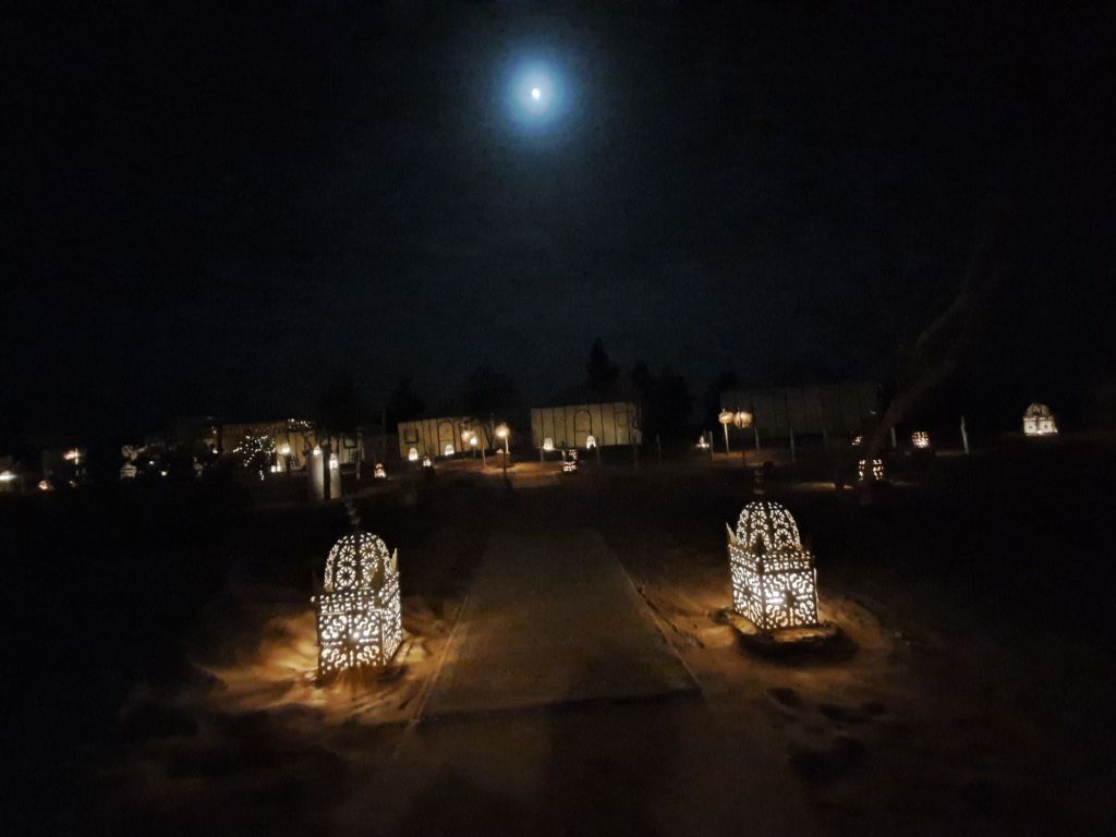 Allà van pujar els 5 nois i vam anar tots cap al campament que tot i estar a l’entrada del desert, actualment està prohibit montar campaments enmig del desert, queda força retirat de la resta augmentat la sensació d’aíllament. Es tracta de unes 10 tendes amb forma de jaima creant un espai interior ple de llumetes i de espais on estar-s’hi. Un campament molt macu ple de detalls.